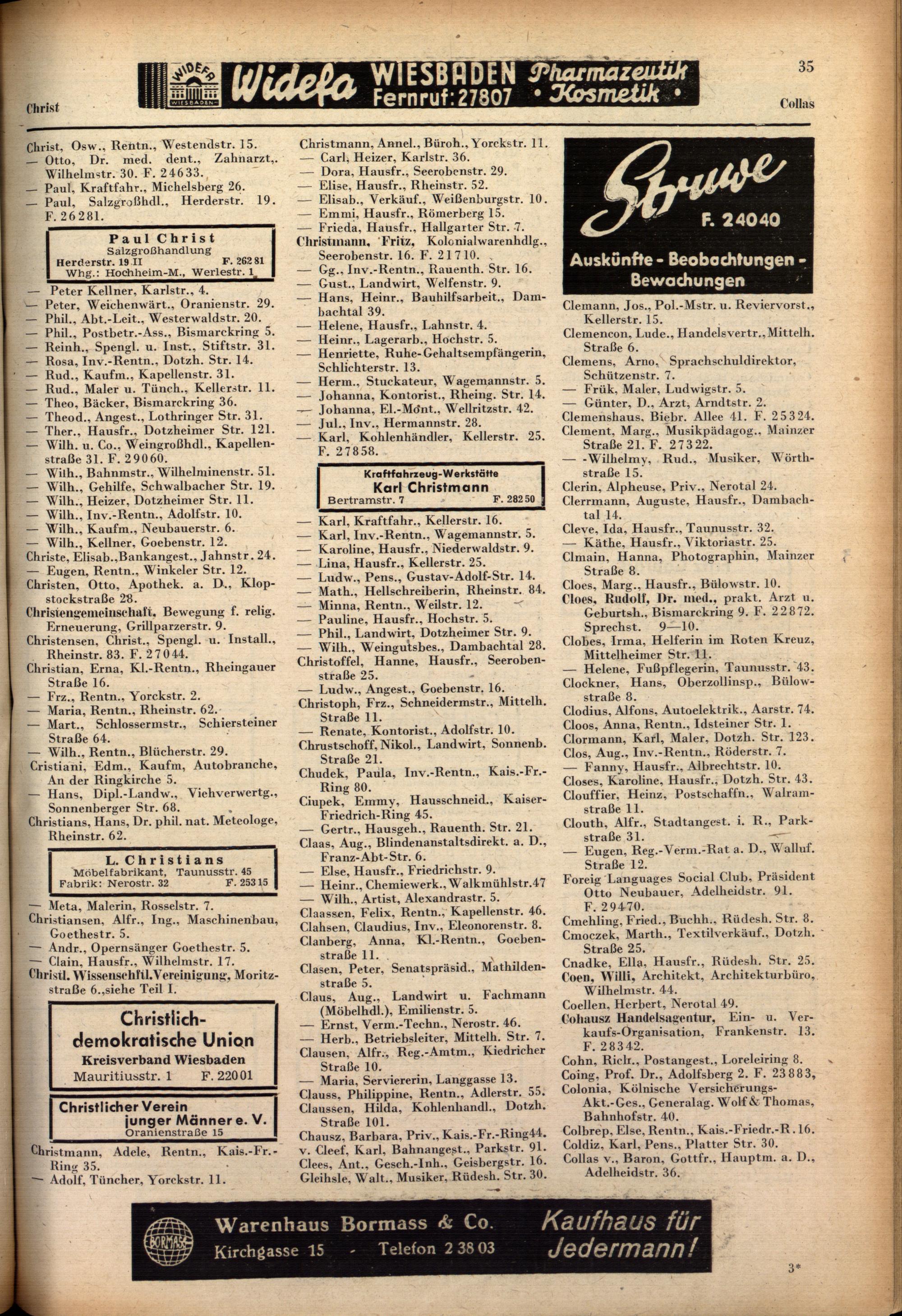 Teil II Alphabetisches Verzeichnis der Haushaltungsvorstände und Firmen