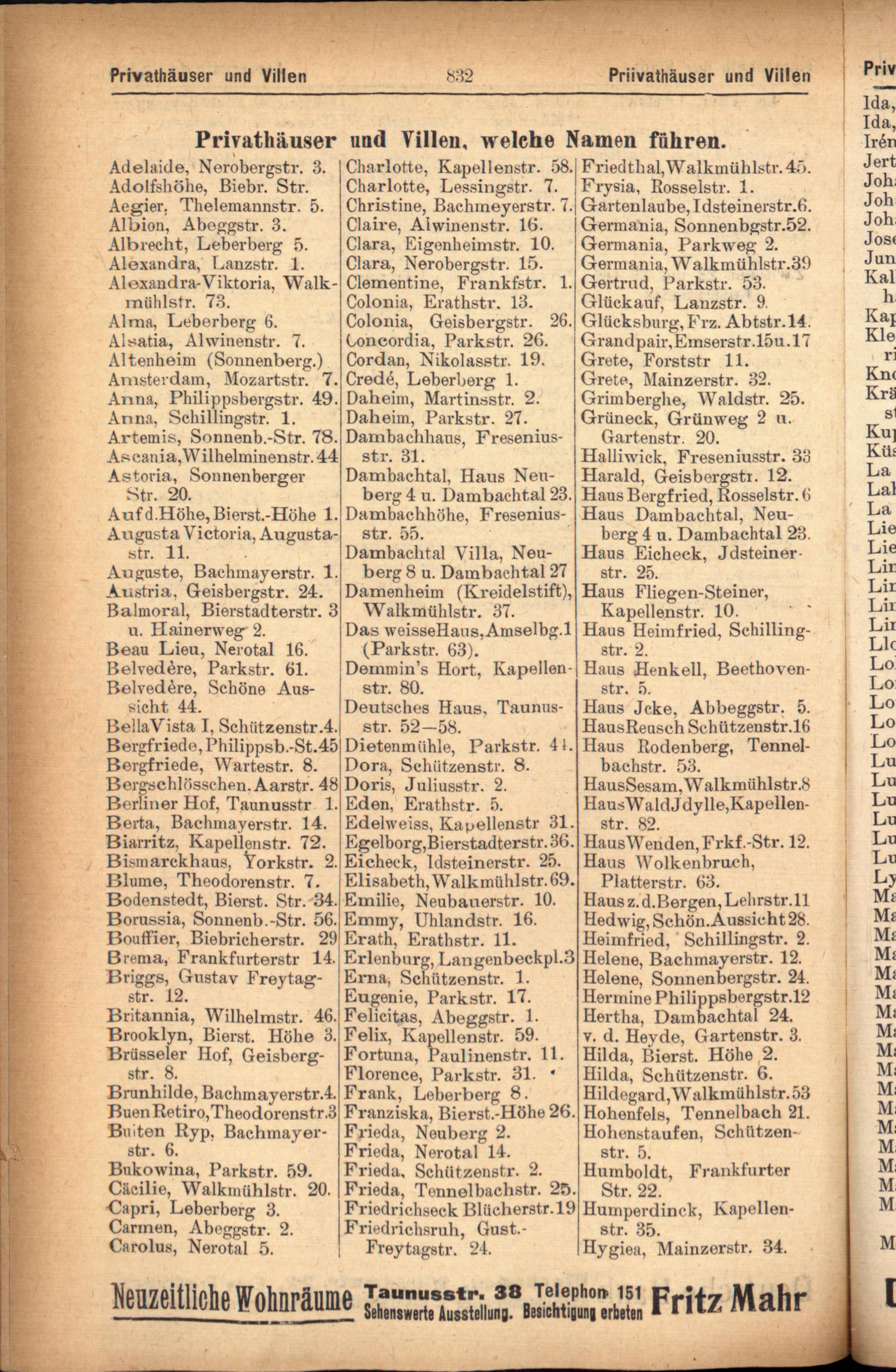 Adressbuch der Residenzstadt Wiesbaden und Umgegend
