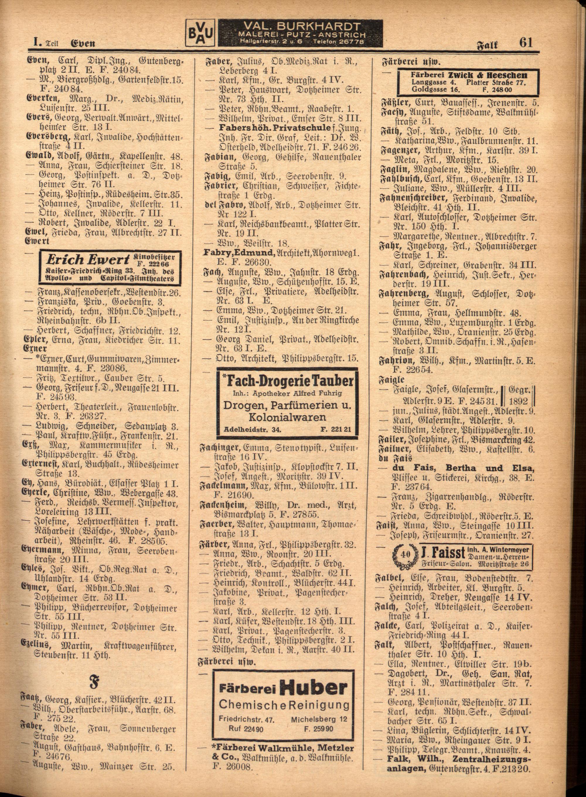 Teil I Haushaltungsvorstände, handelsgerichtlich eingetragene Firmen und Gewerbebetriebe...