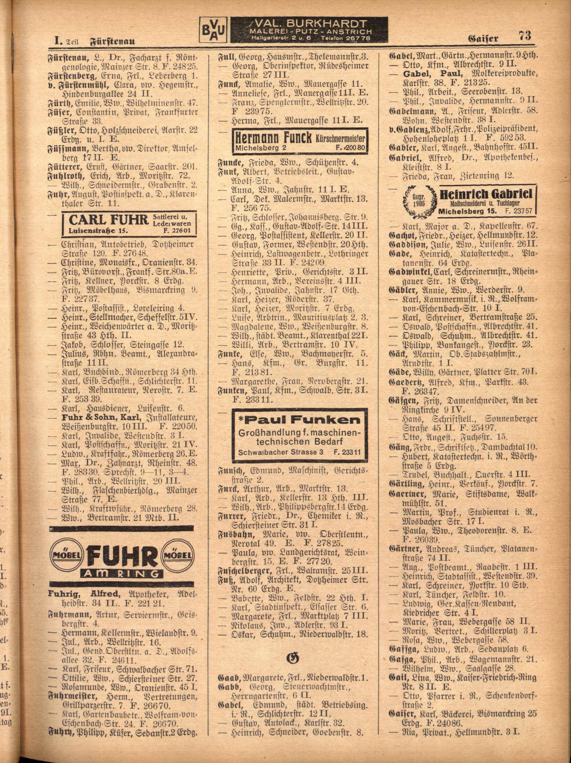 Teil I Haushaltungsvorstände, handelsgerichtlich eingetragene Firmen und Gewerbebetriebe...