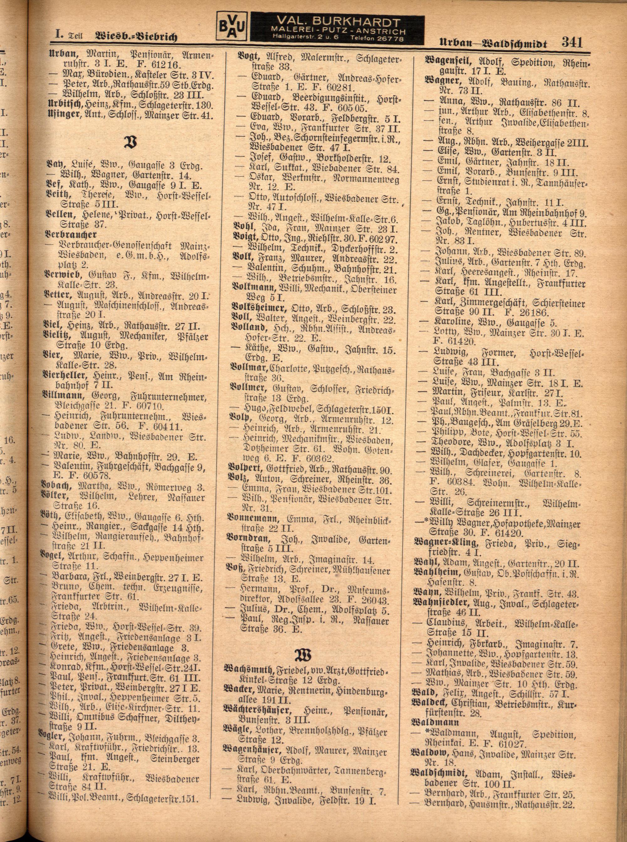 Teil I Haushaltungsvorstände, handelsgerichtlich eingetragene Firmen und Gewerbebetriebe...
