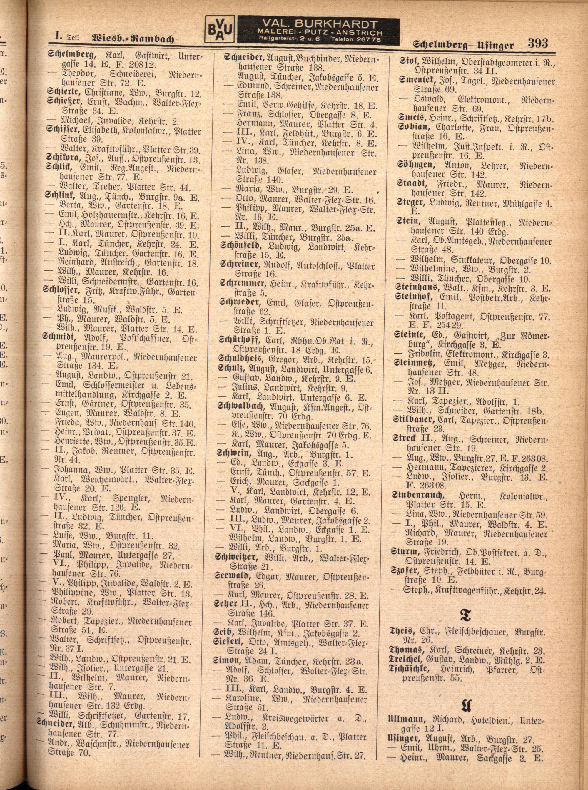 Teil I Haushaltungsvorstände, handelsgerichtlich eingetragene Firmen und Gewerbebetriebe...