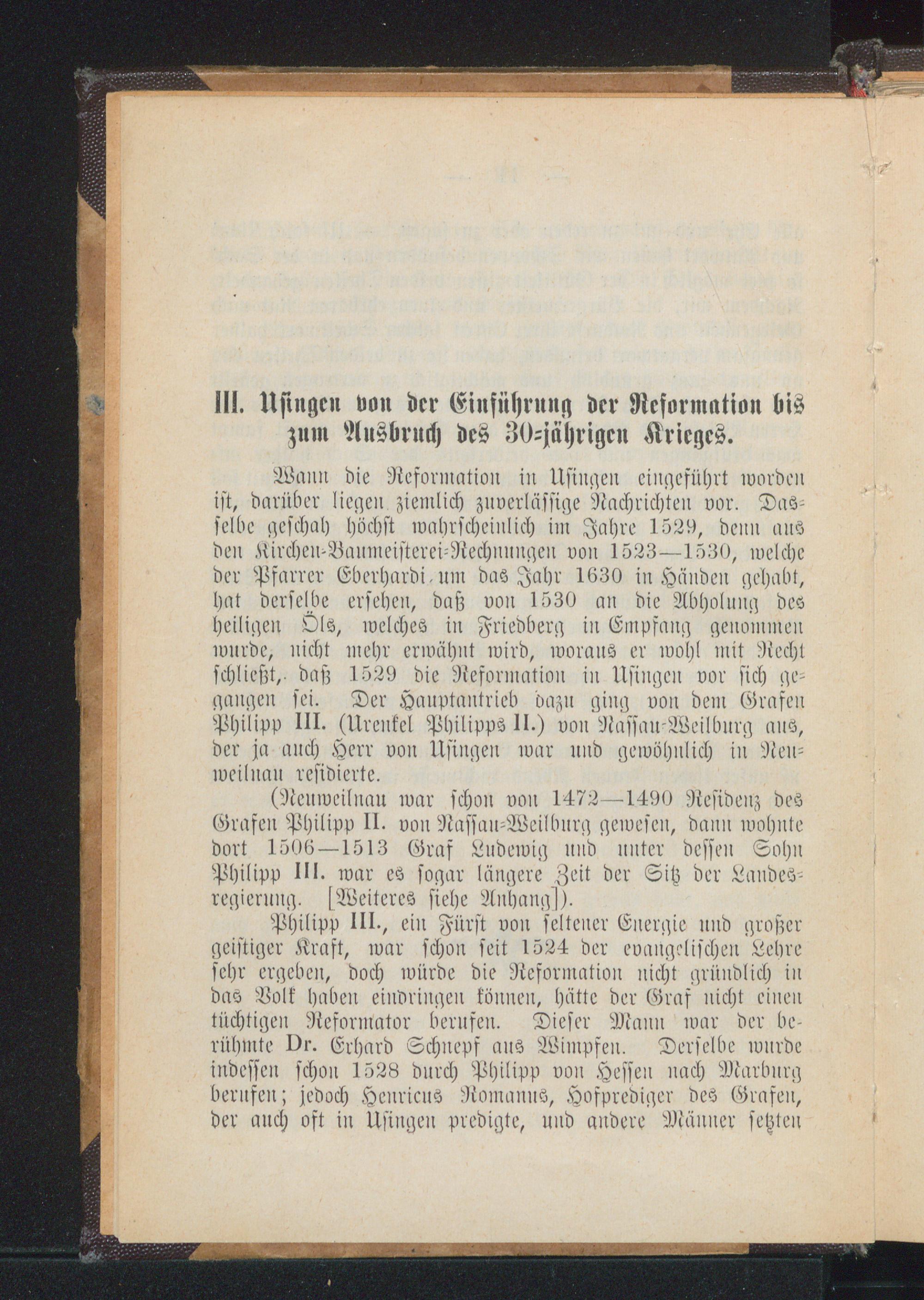 III. Usingen von der Einführung der Reformation bis zum Ausbruch des 30-jährigen Krieges.