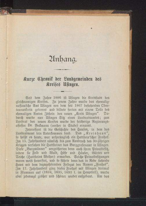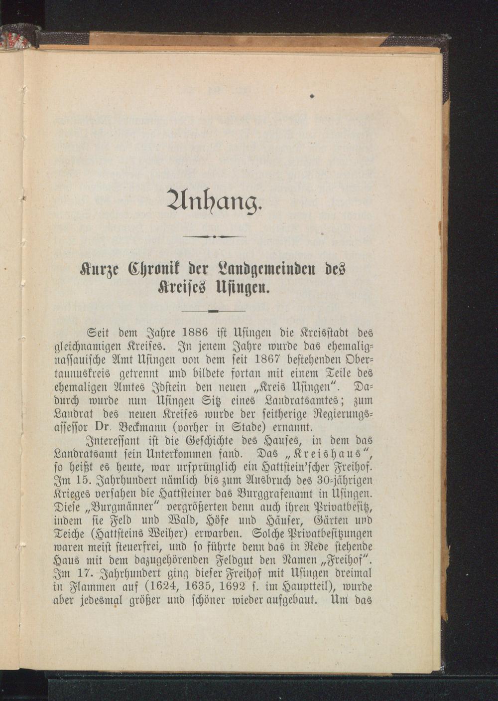 Anhang. Kurze Chronik der Landgemeinden des Kreises Usingen.