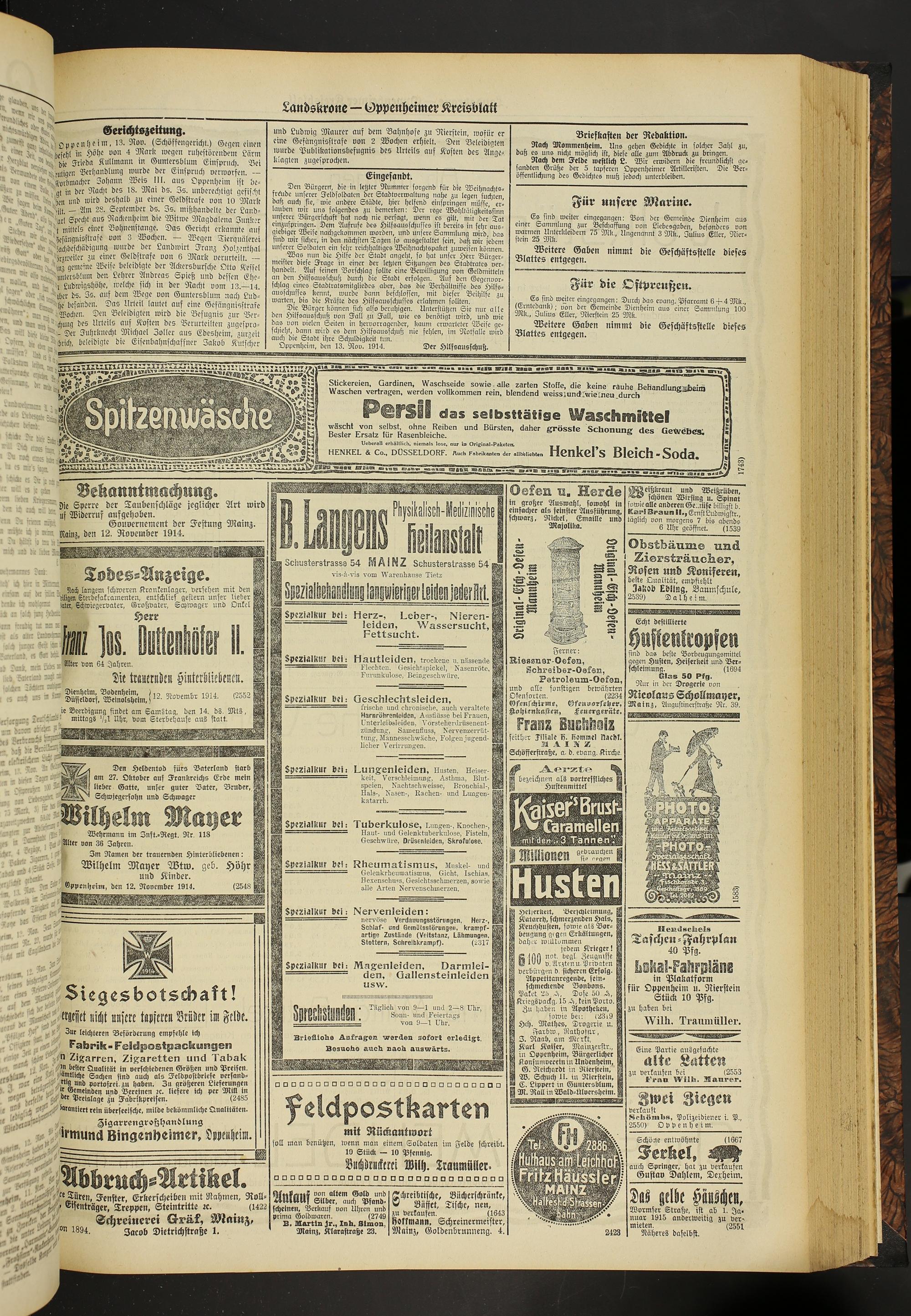 Regionale Zeitungen aus der Zeit des Ersten Weltkrieges