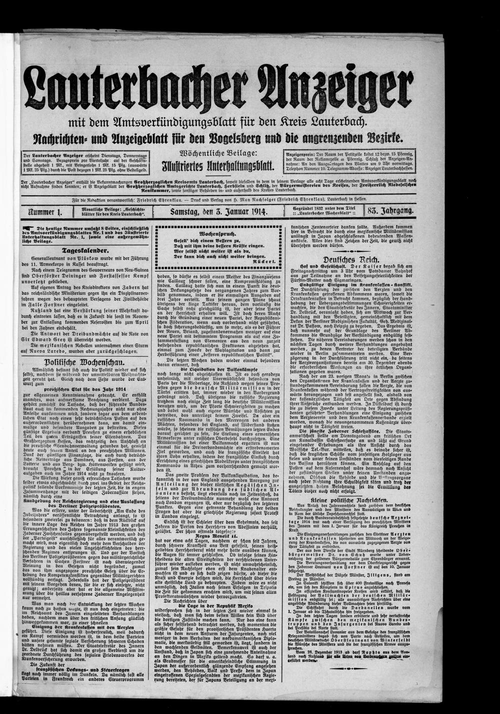 Lauterbacher Anzeiger. 1849-1916
