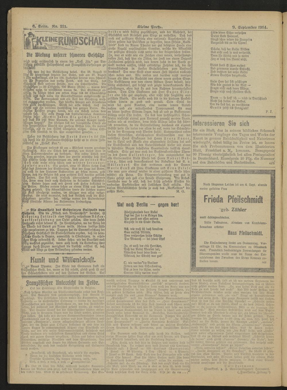 Regionale Zeitungen aus der Zeit des Ersten Weltkrieges