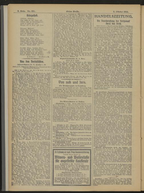 Regionale Zeitungen aus der Zeit des Ersten Weltkrieges