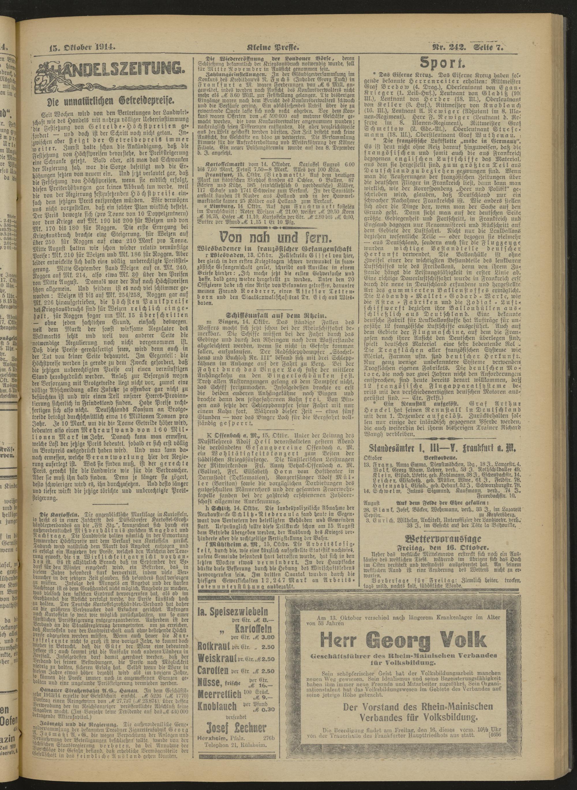 Regionale Zeitungen aus der Zeit des Ersten Weltkrieges