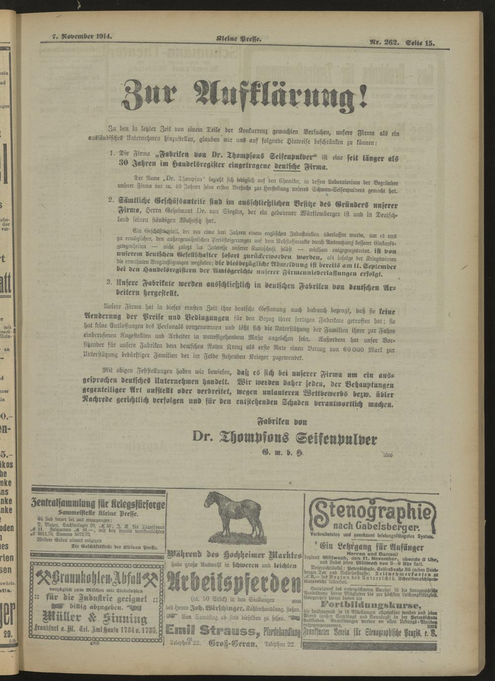 Regionale Zeitungen aus der Zeit des Ersten Weltkrieges