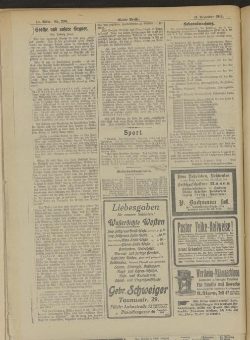 Regionale Zeitungen aus der Zeit des Ersten Weltkrieges