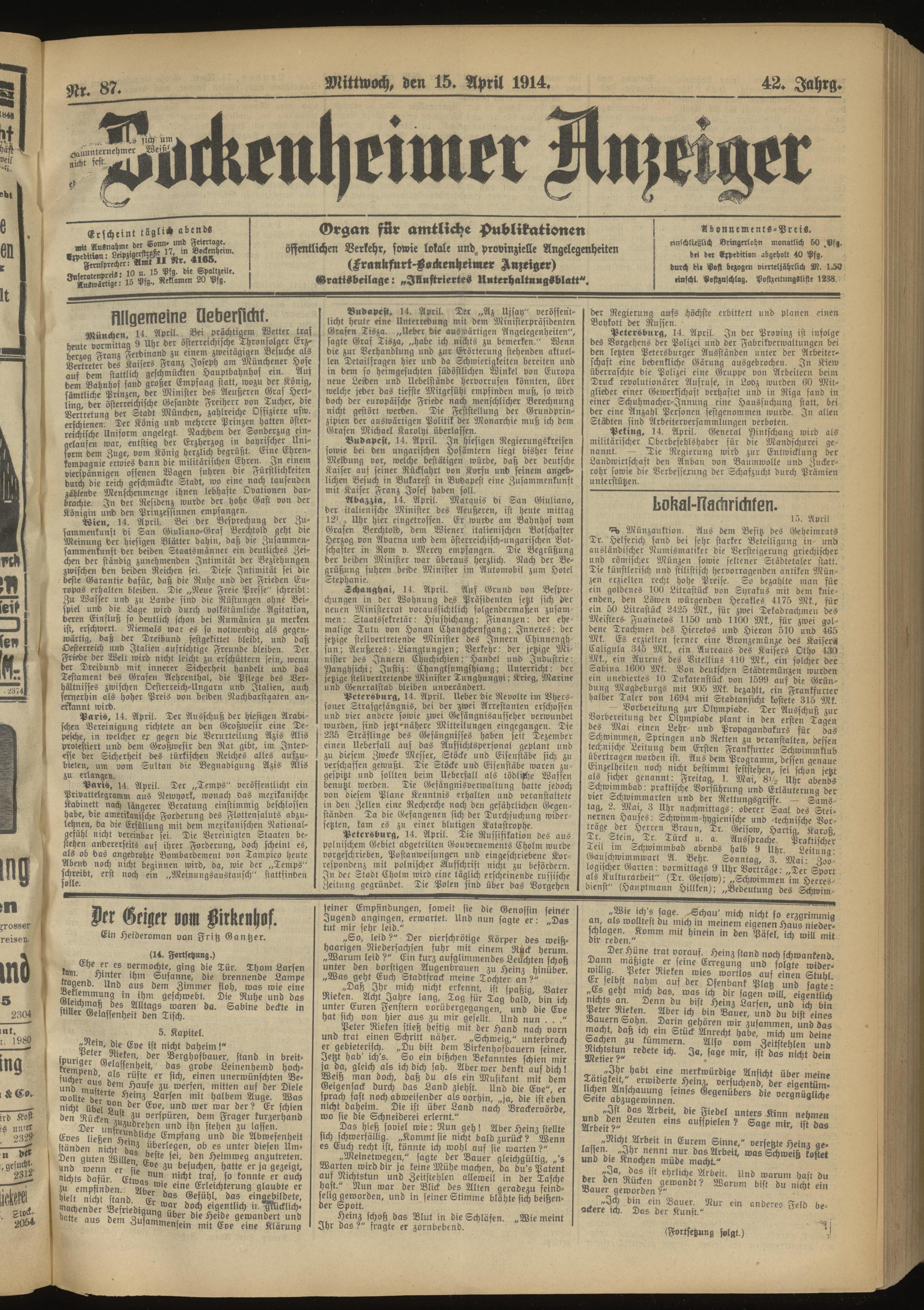 Regionale Zeitungen aus der Zeit des Ersten Weltkrieges