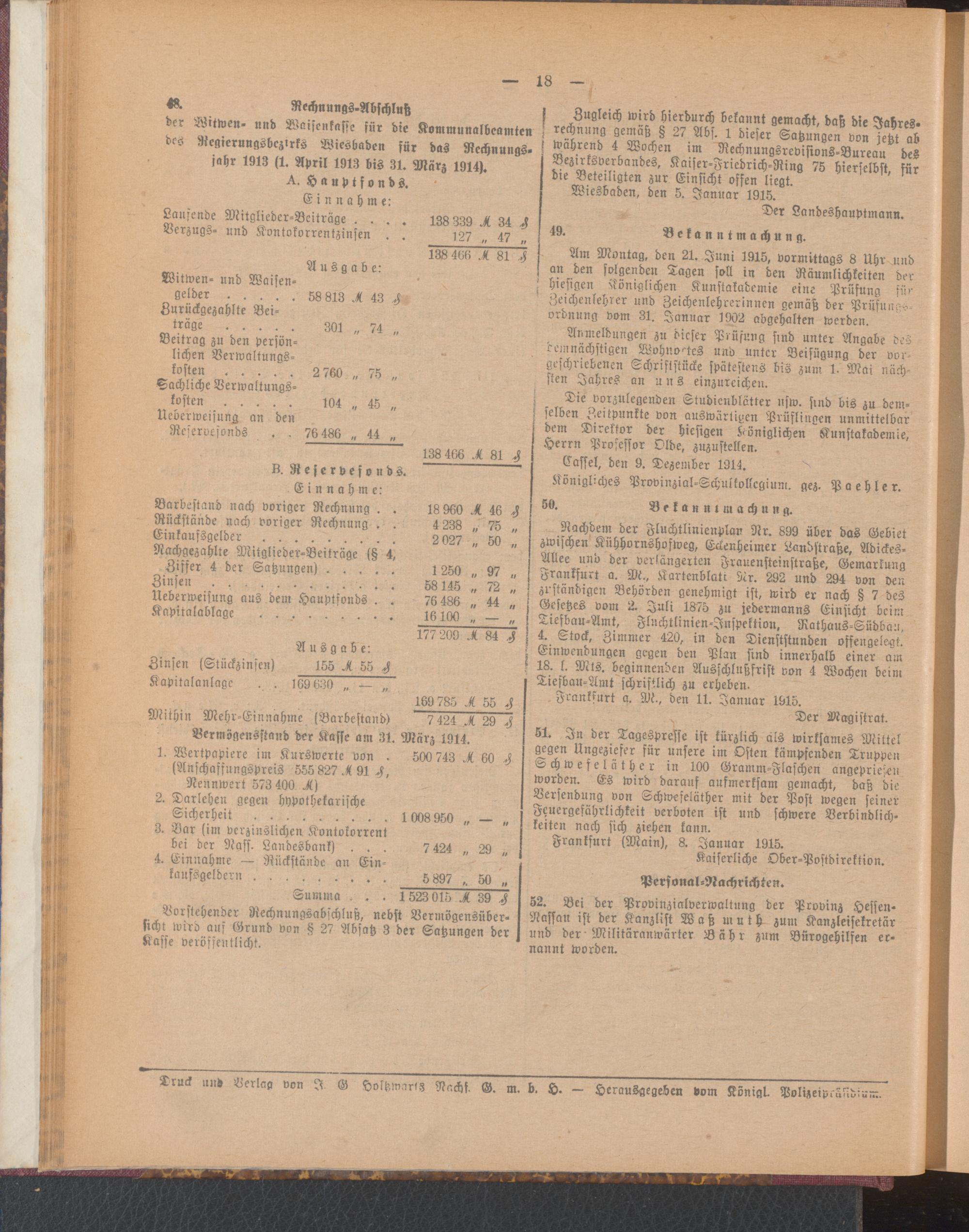 Amtsblatt für den Stadtkreis Frankfurt a.M.. 1828-1918
