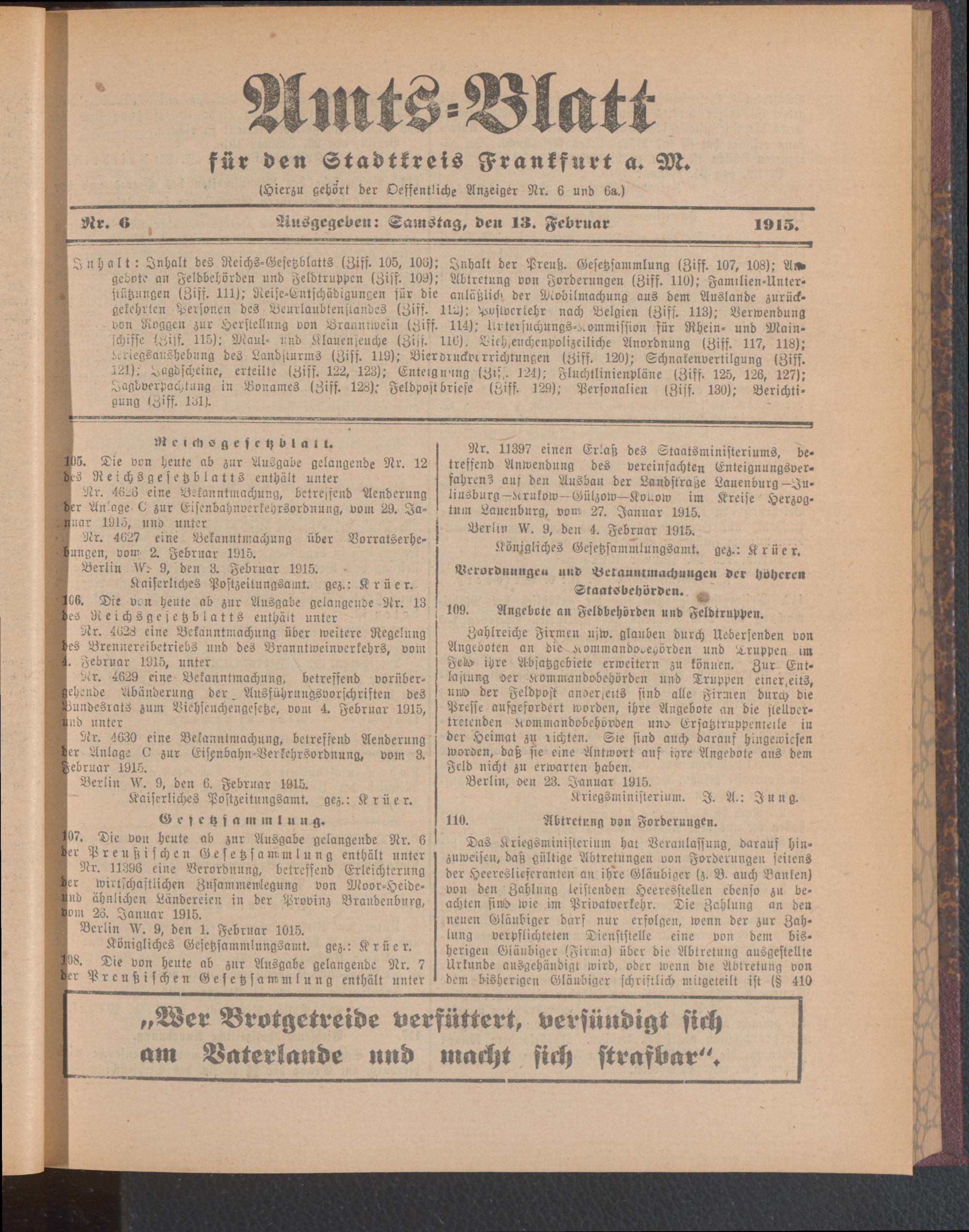 Amtsblatt für den Stadtkreis Frankfurt a.M.....