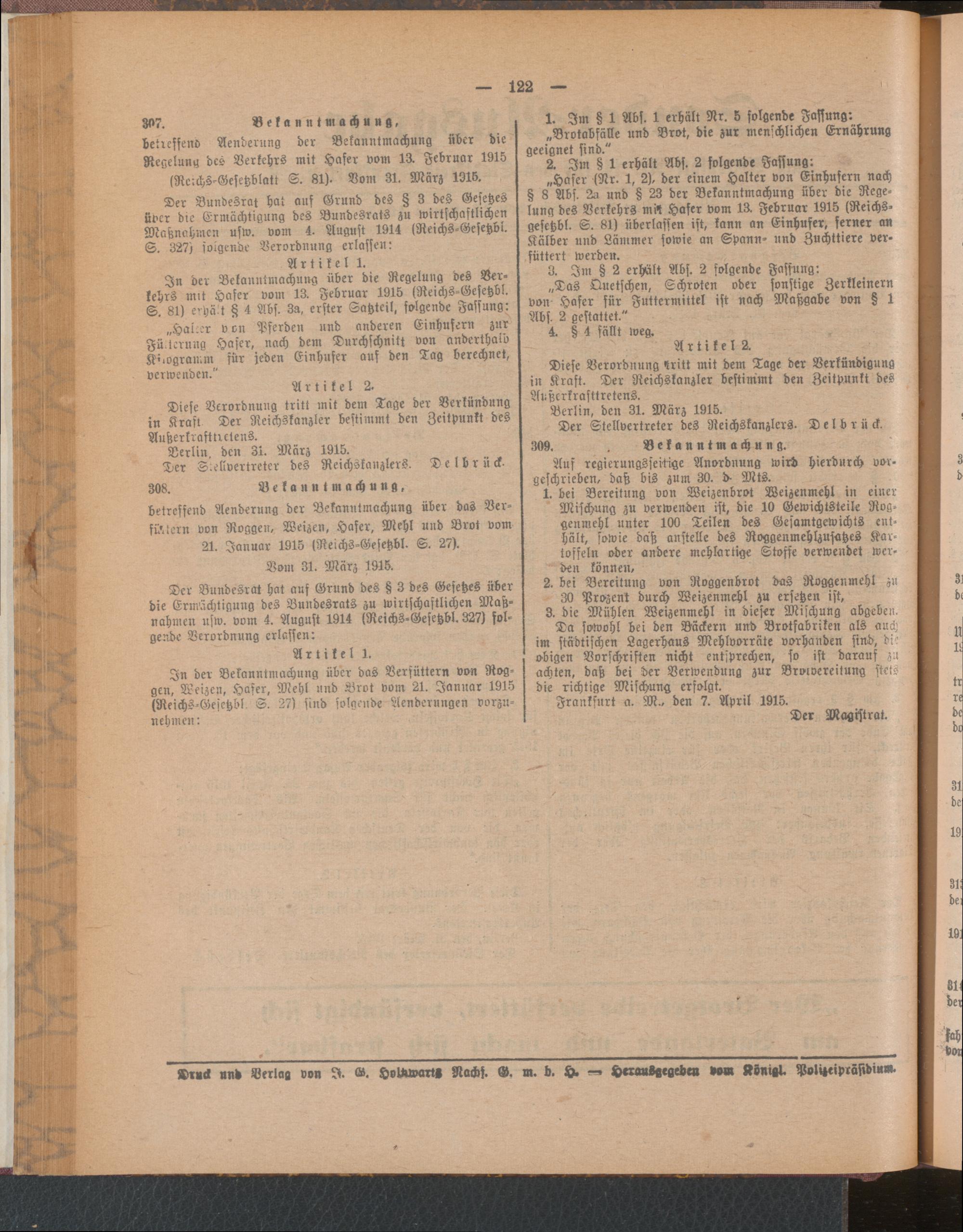 Amtsblatt für den Stadtkreis Frankfurt a.M.. 1828-1918