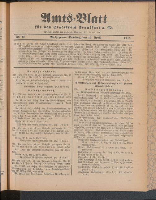 Amtsblatt für den Stadtkreis Frankfurt a.M.....