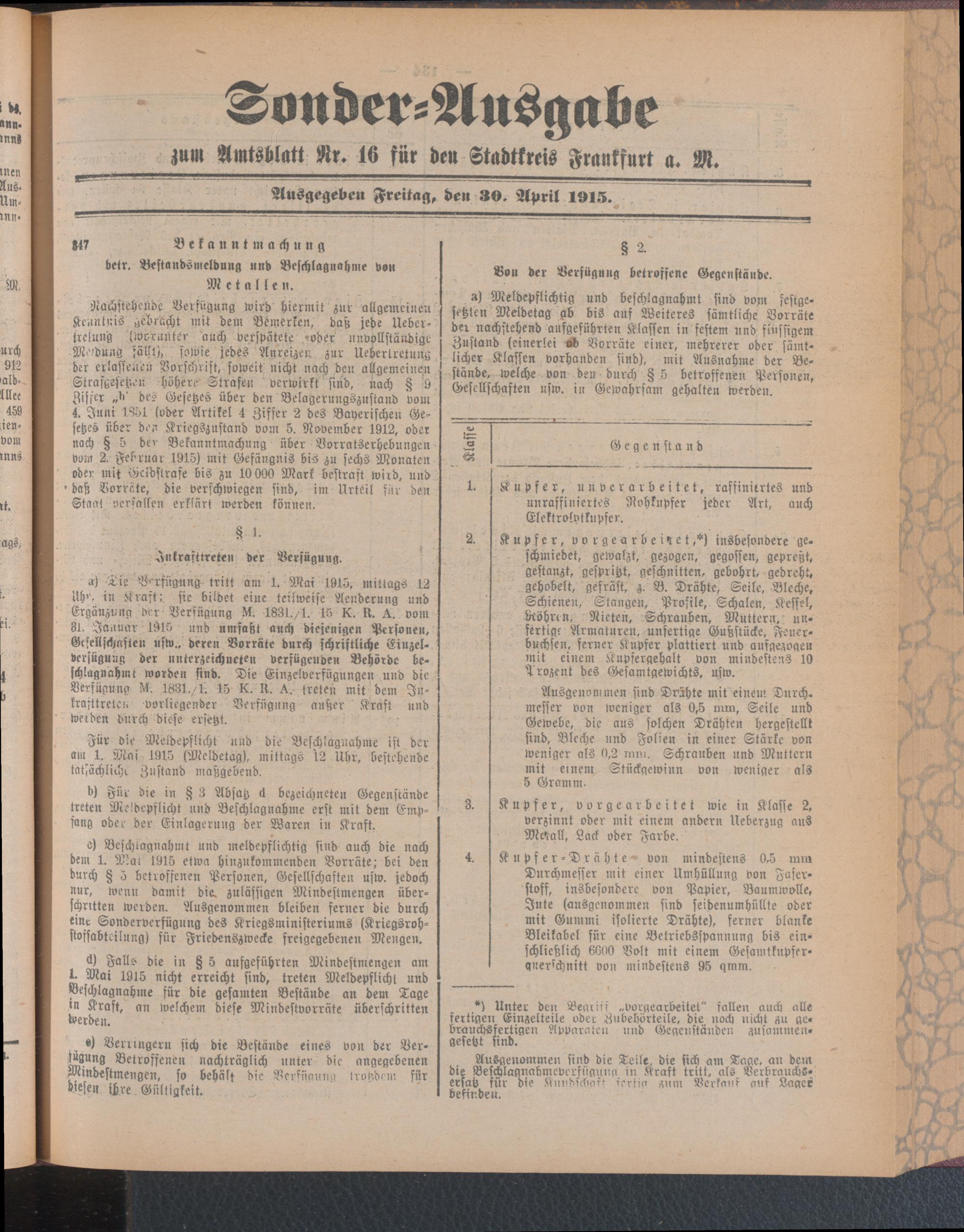 30.04.1915 = Sonder-Ausgabe zu Nr. 16