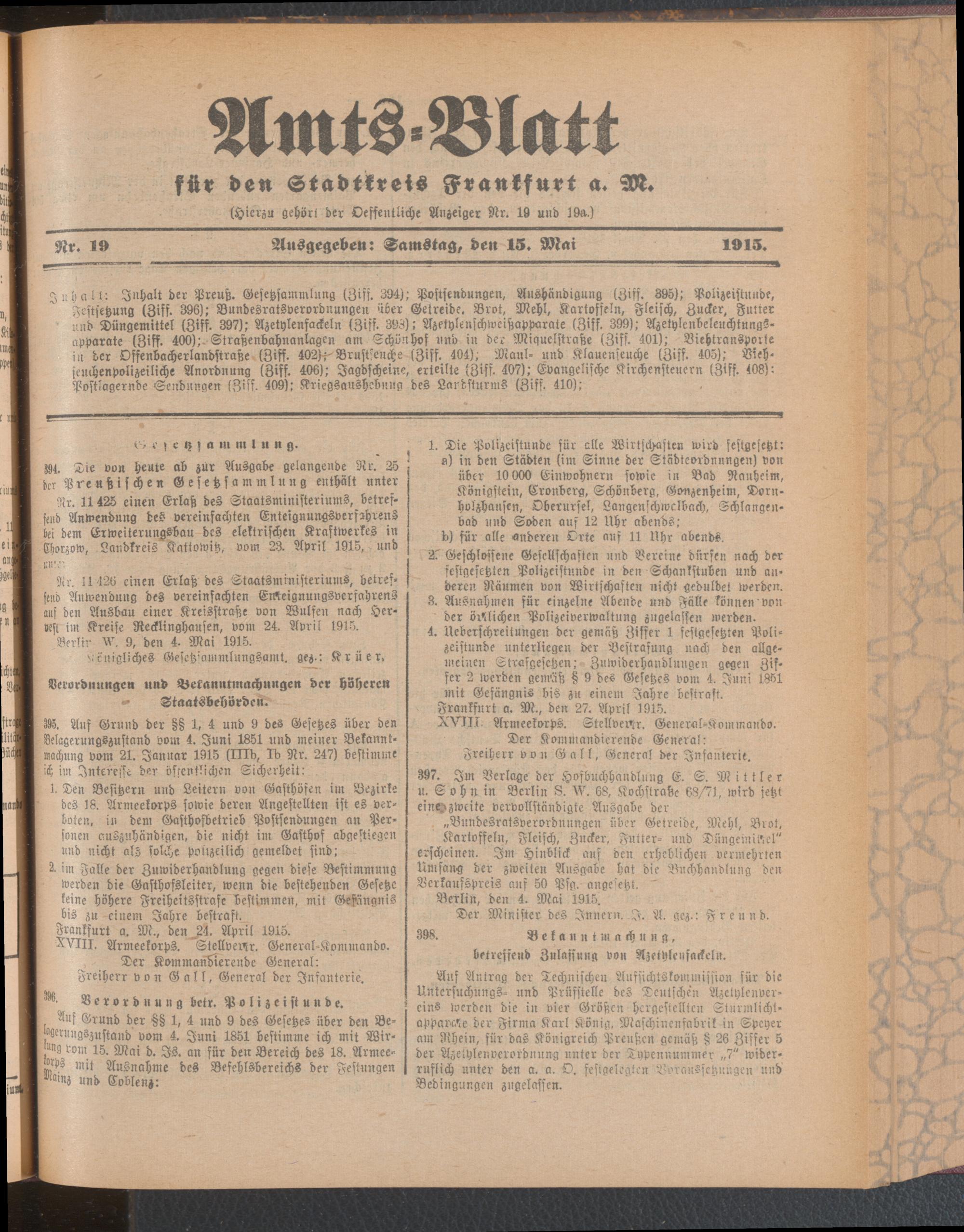 Amtsblatt für den Stadtkreis Frankfurt a.M.....