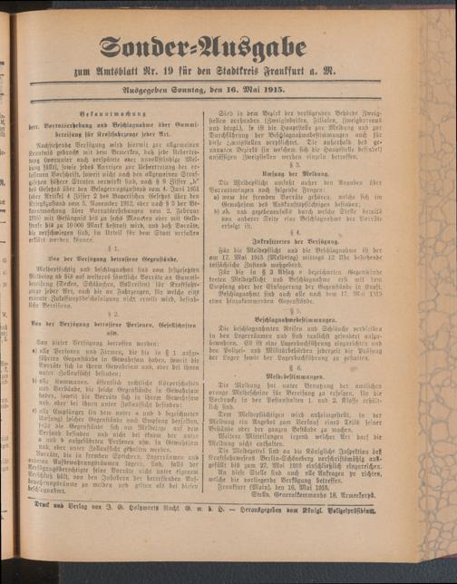 16.05.1915 = Sonder-Ausgabe zu Nr. 19
