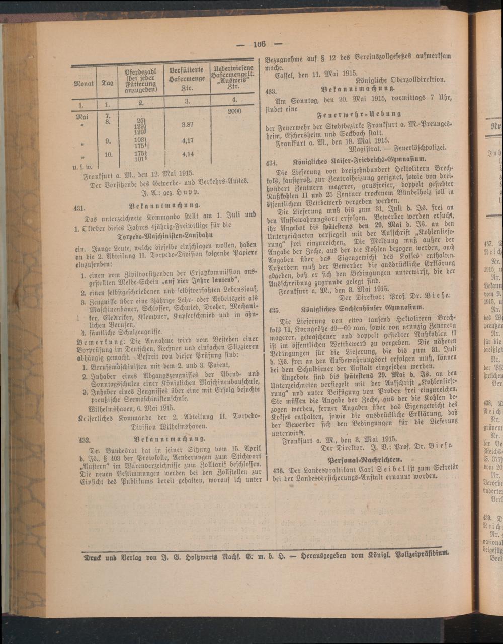Amtsblatt für den Stadtkreis Frankfurt a.M.. 1828-1918