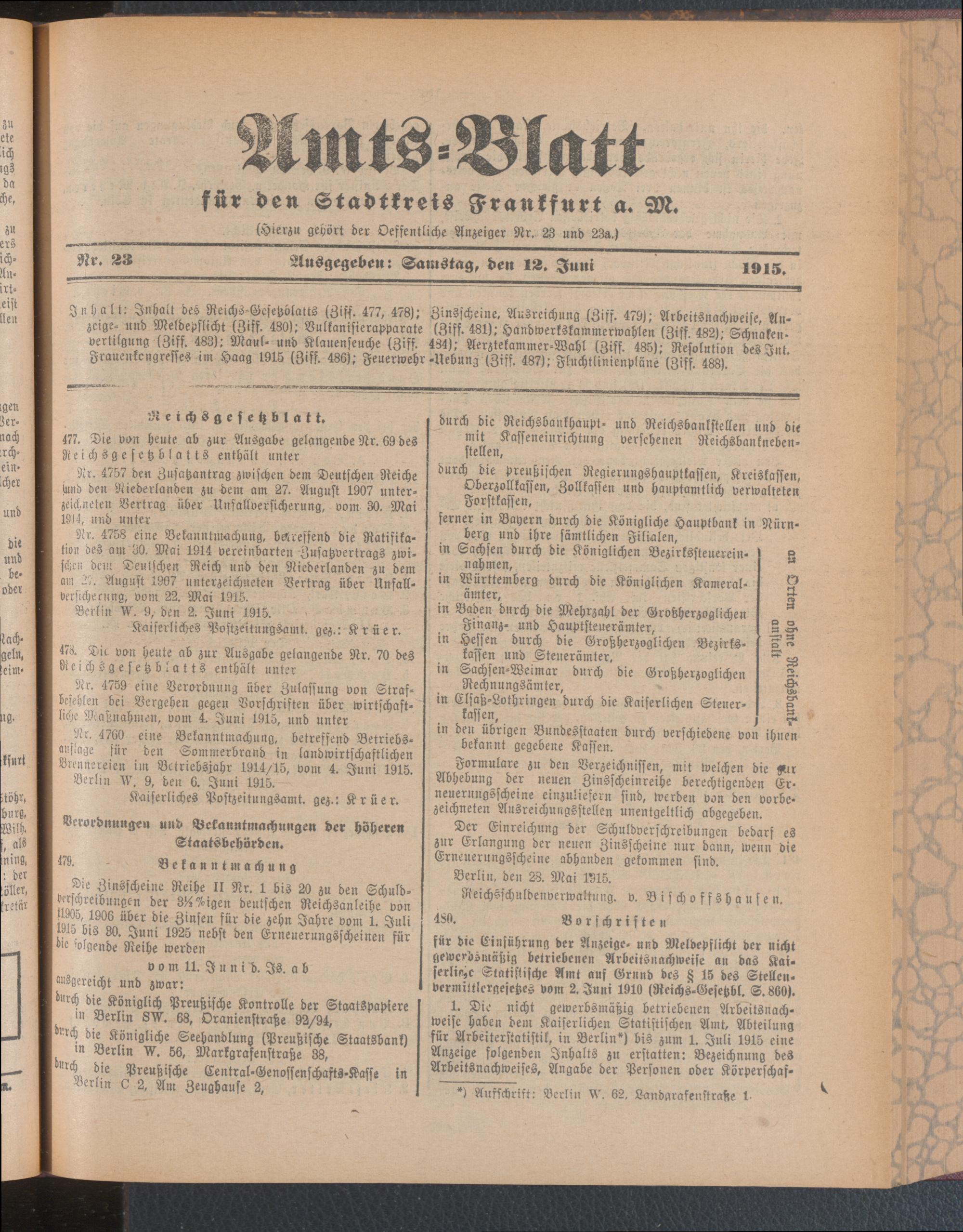 Amtsblatt für den Stadtkreis Frankfurt a.M.....