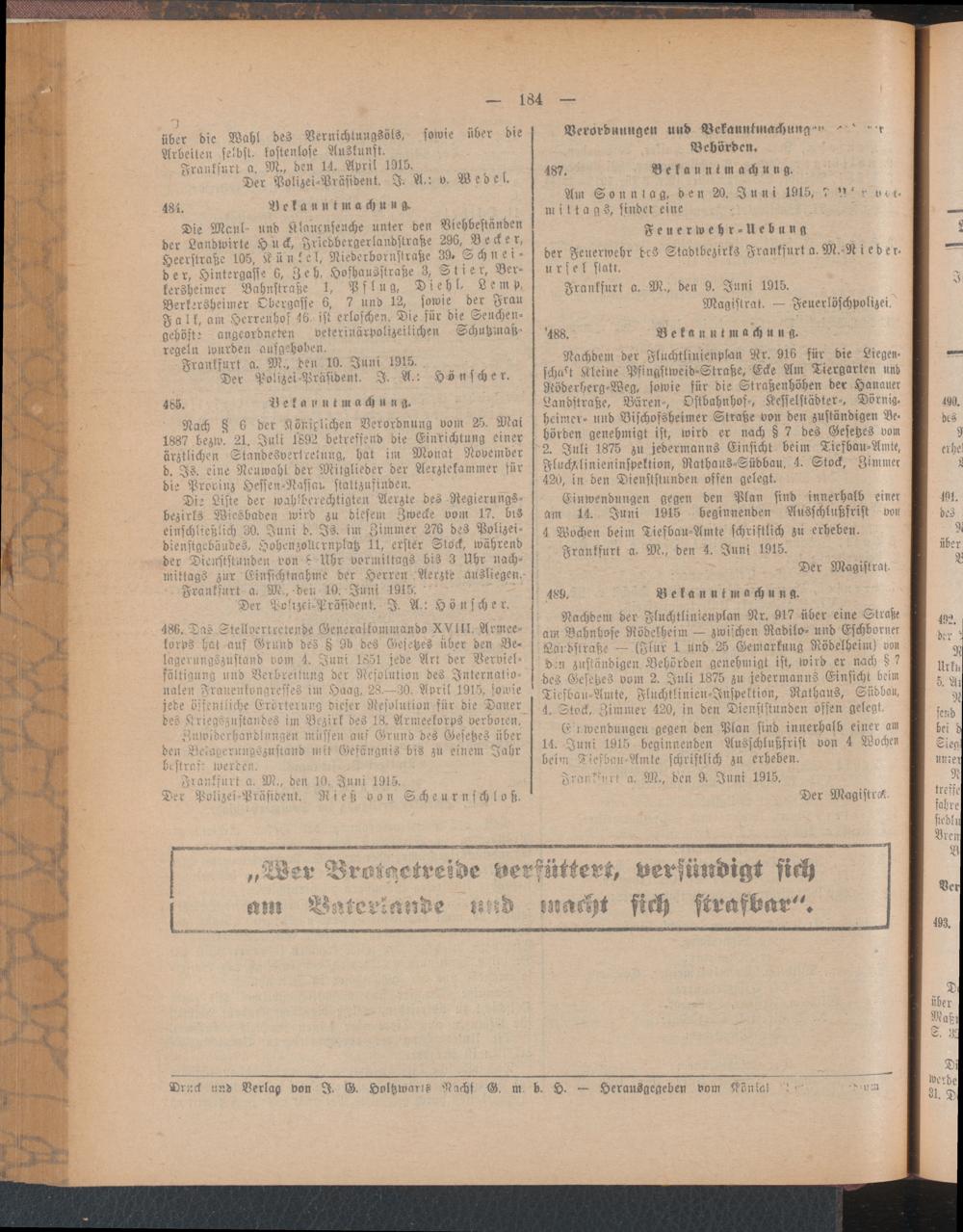 Amtsblatt für den Stadtkreis Frankfurt a.M.....