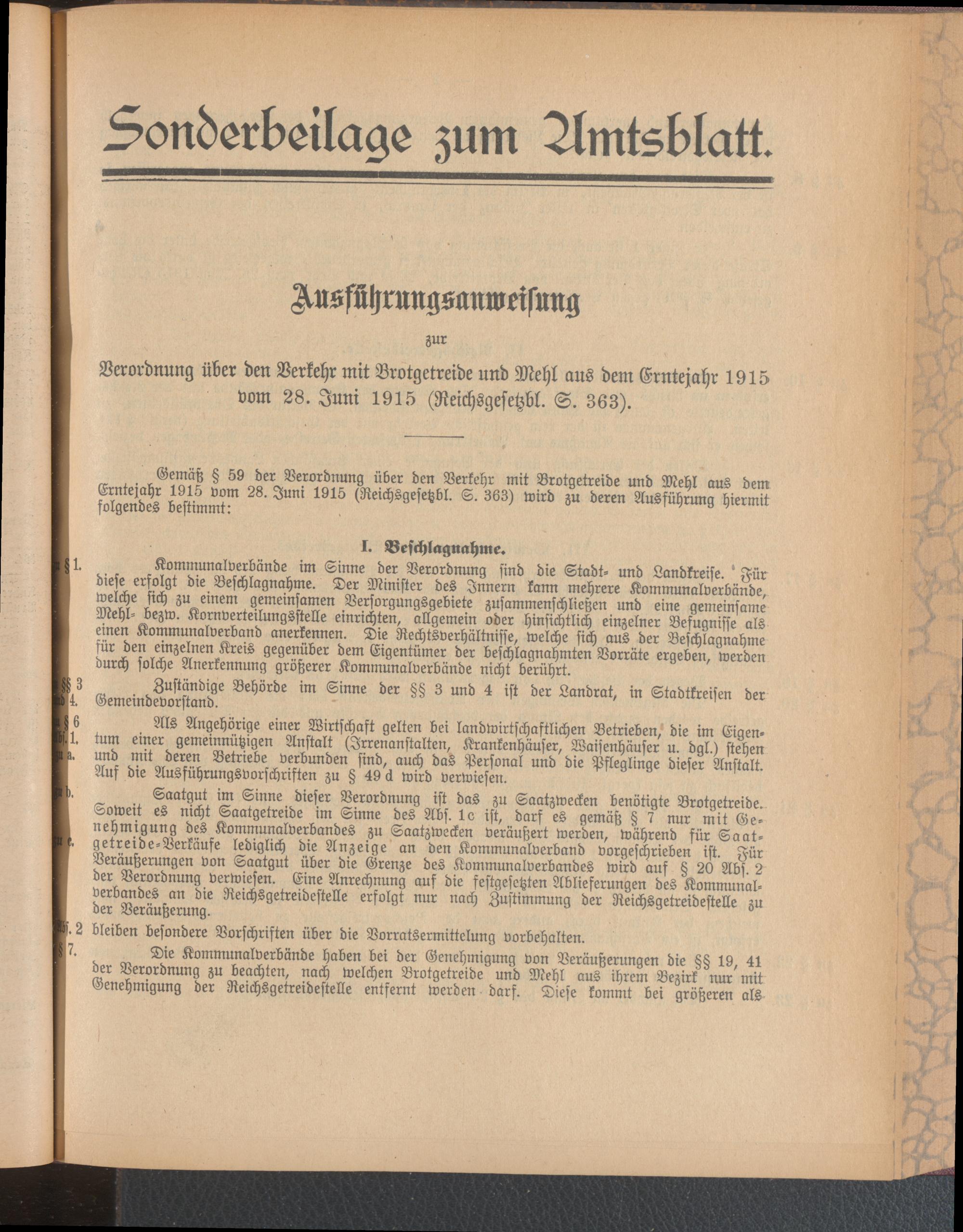 Sonderbeilage zum Amtsblatt Juli 1915