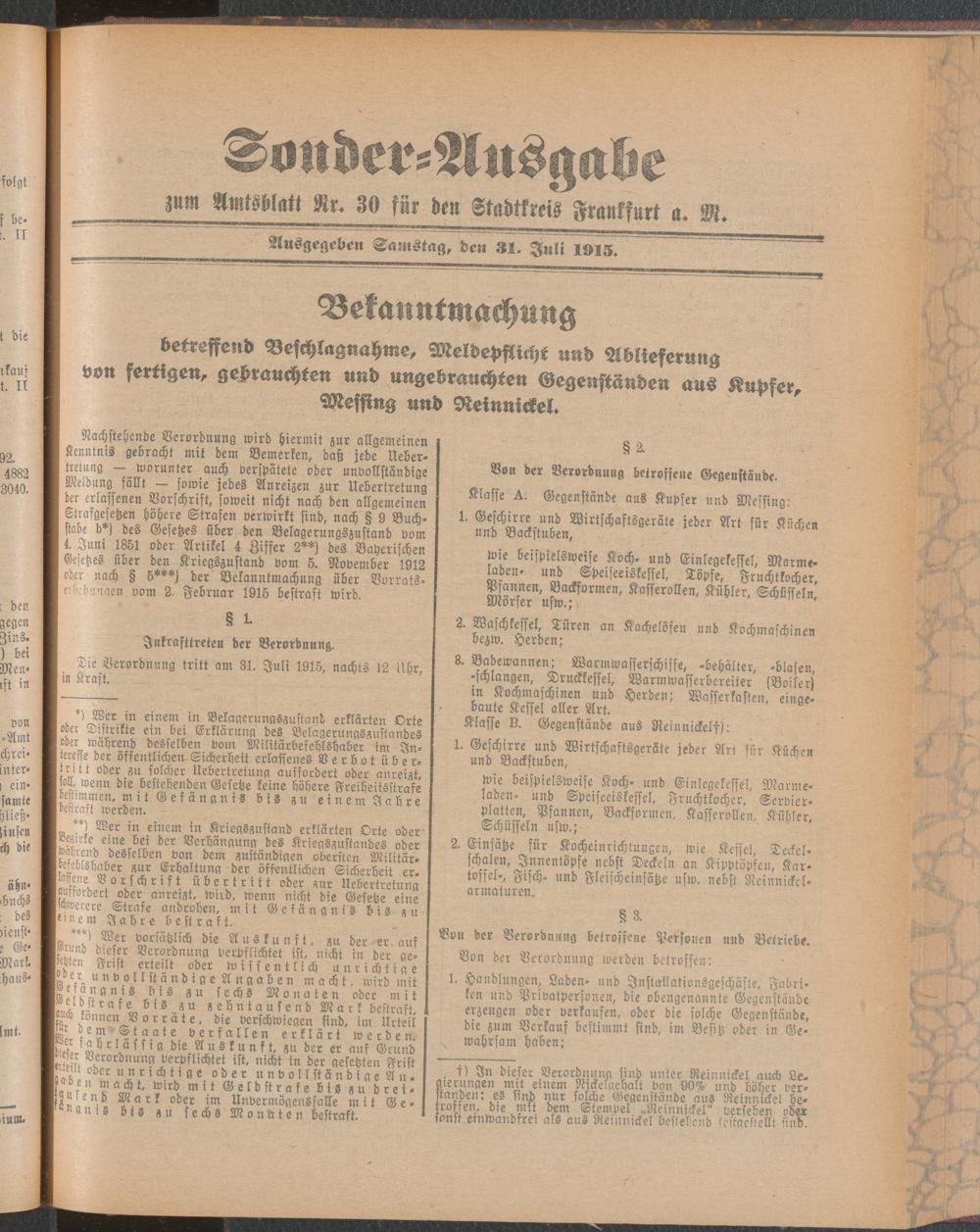 31.07.1915 = Sonder-Ausgabe zu Nr. 30