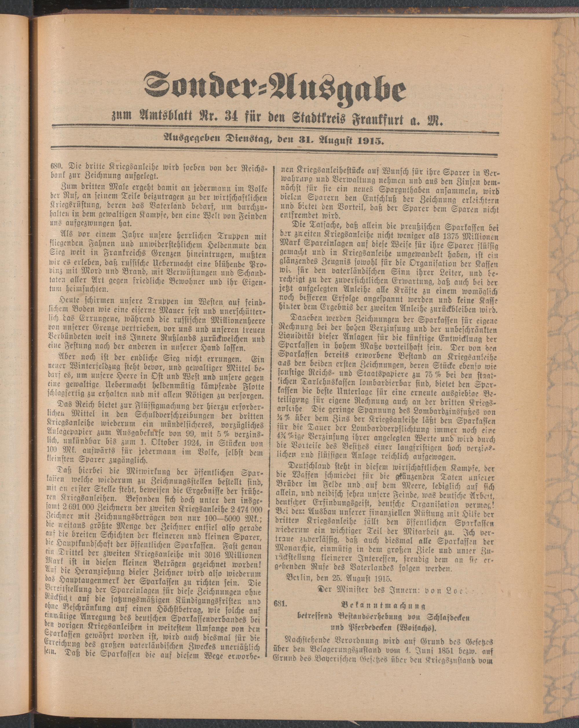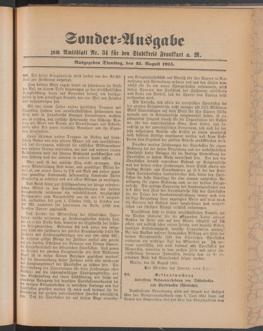 31.08.1915 = Sonder-Ausgabe zu Nr. 34