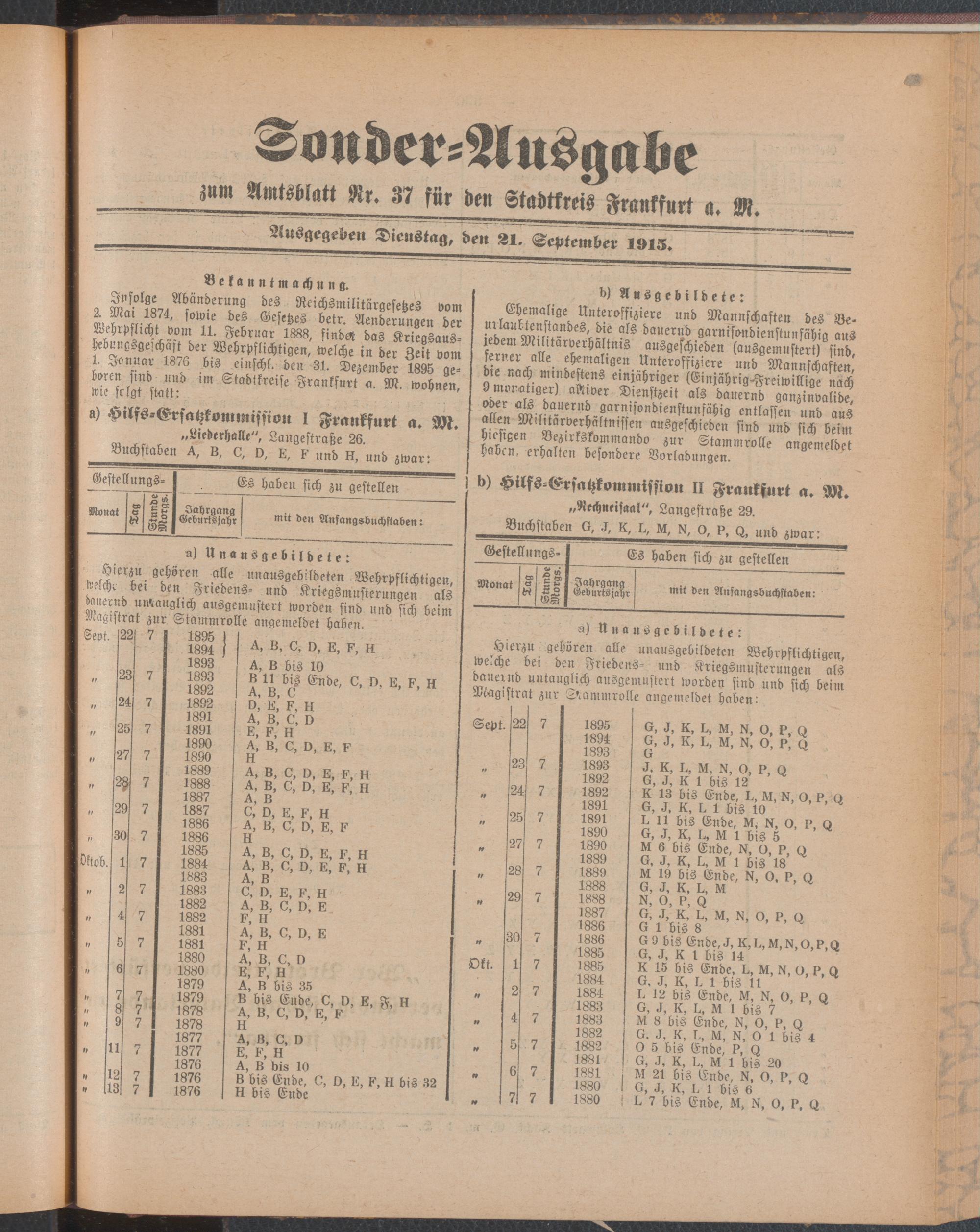 21.09.1915 = Sonder-Ausgabe zu Nr. 37