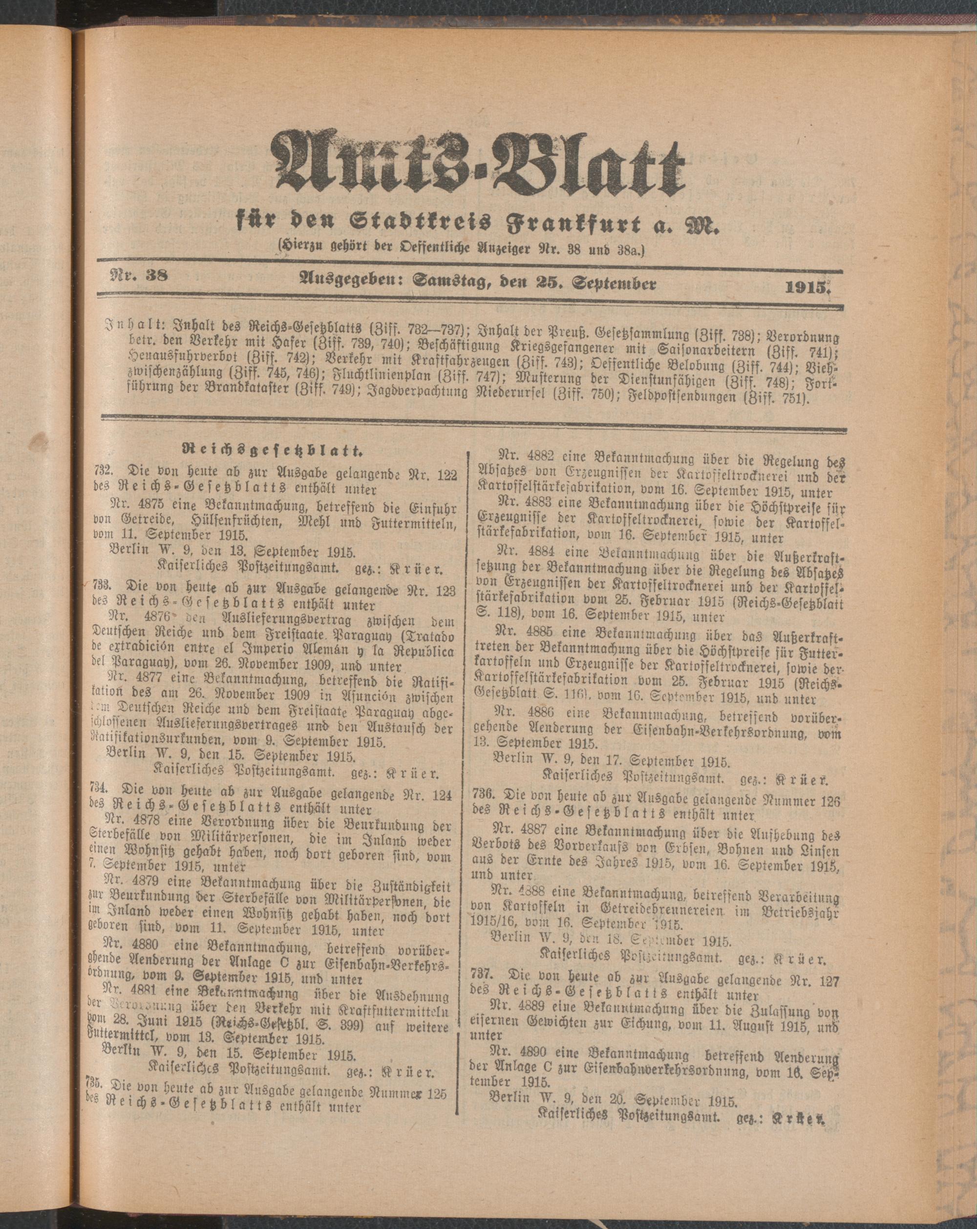 Amtsblatt für den Stadtkreis Frankfurt a.M.....