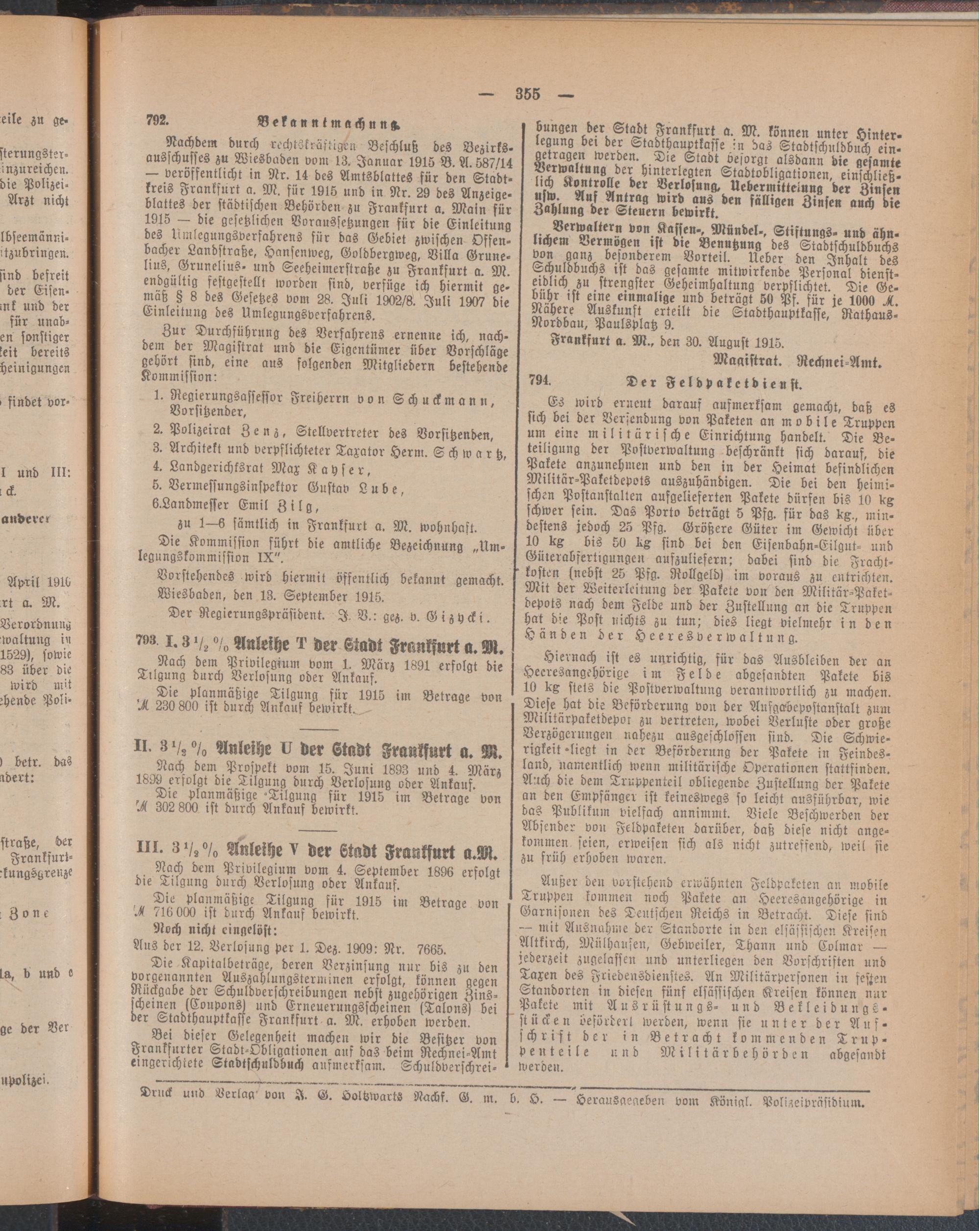 Amtsblatt für den Stadtkreis Frankfurt a.M.. 1828-1918