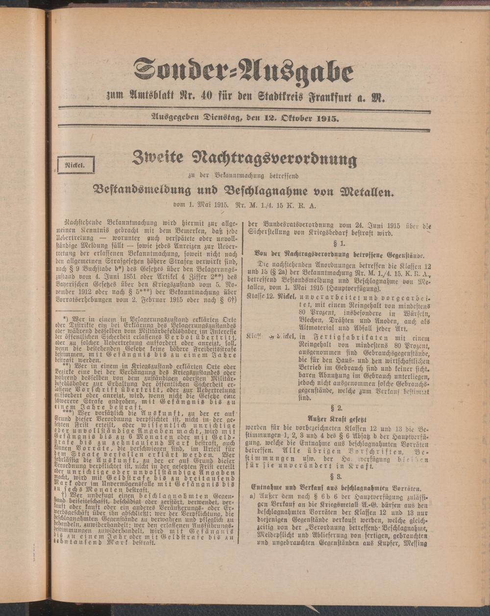 12.10.1915 = Sonder-Ausgabe zu Nr. 40
