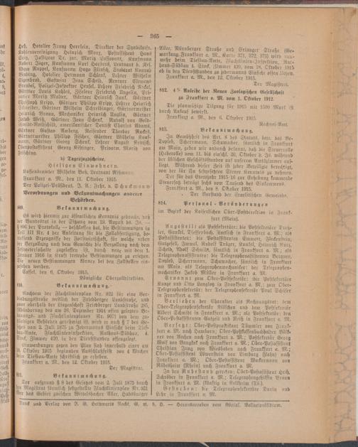 Amtsblatt für den Stadtkreis Frankfurt a.M.. 1828-1918