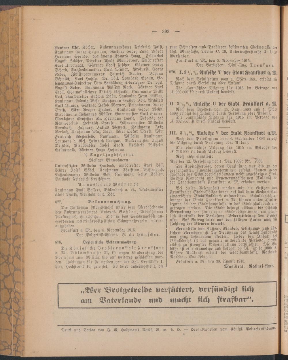 Amtsblatt für den Stadtkreis Frankfurt a.M.. 1828-1918