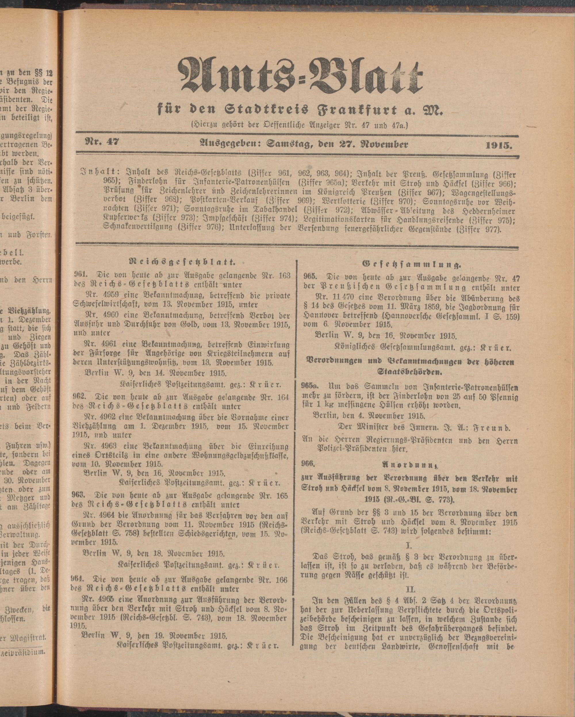 Amtsblatt für den Stadtkreis Frankfurt a.M.....