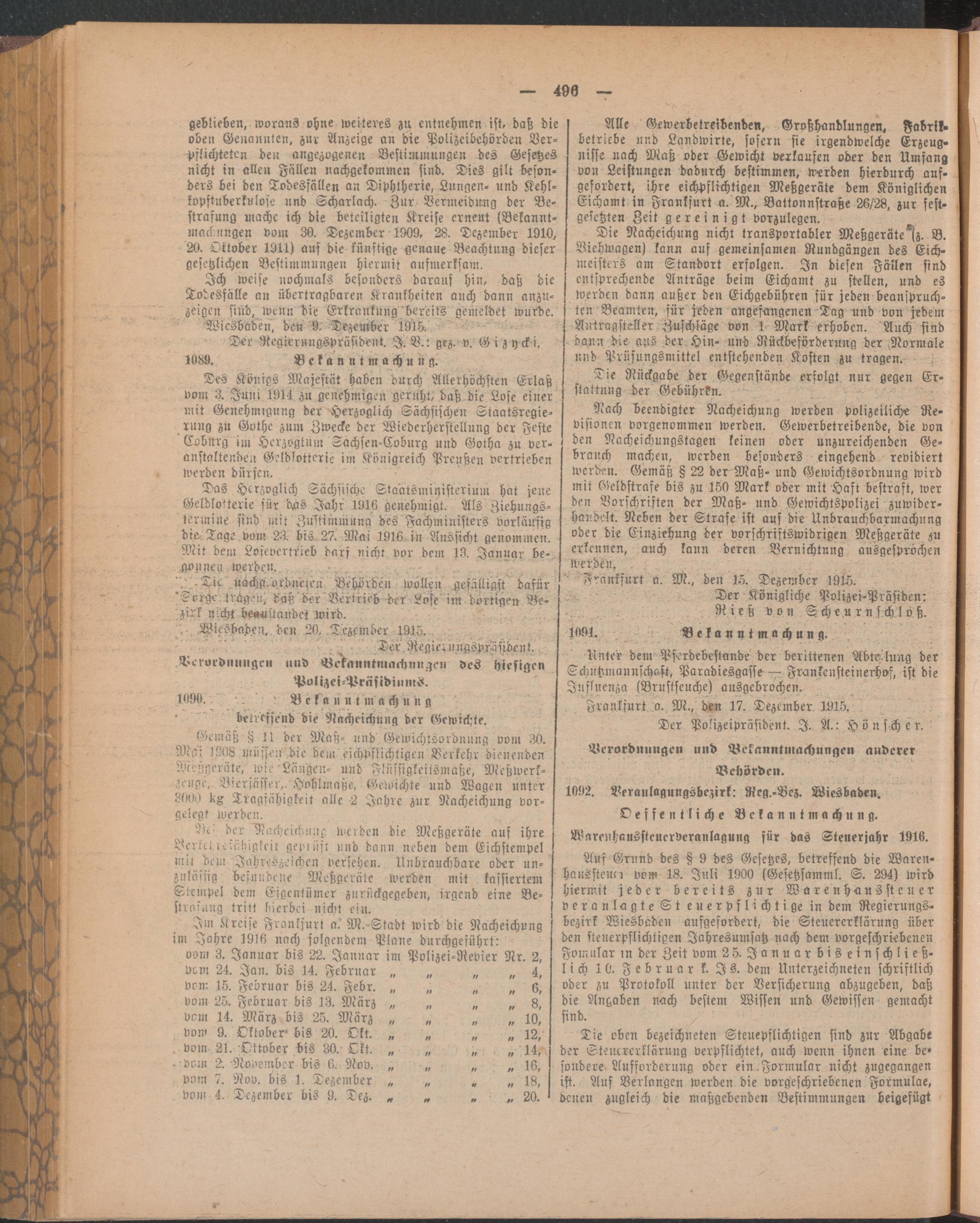 Amtsblatt für den Stadtkreis Frankfurt a.M.. 1828-1918