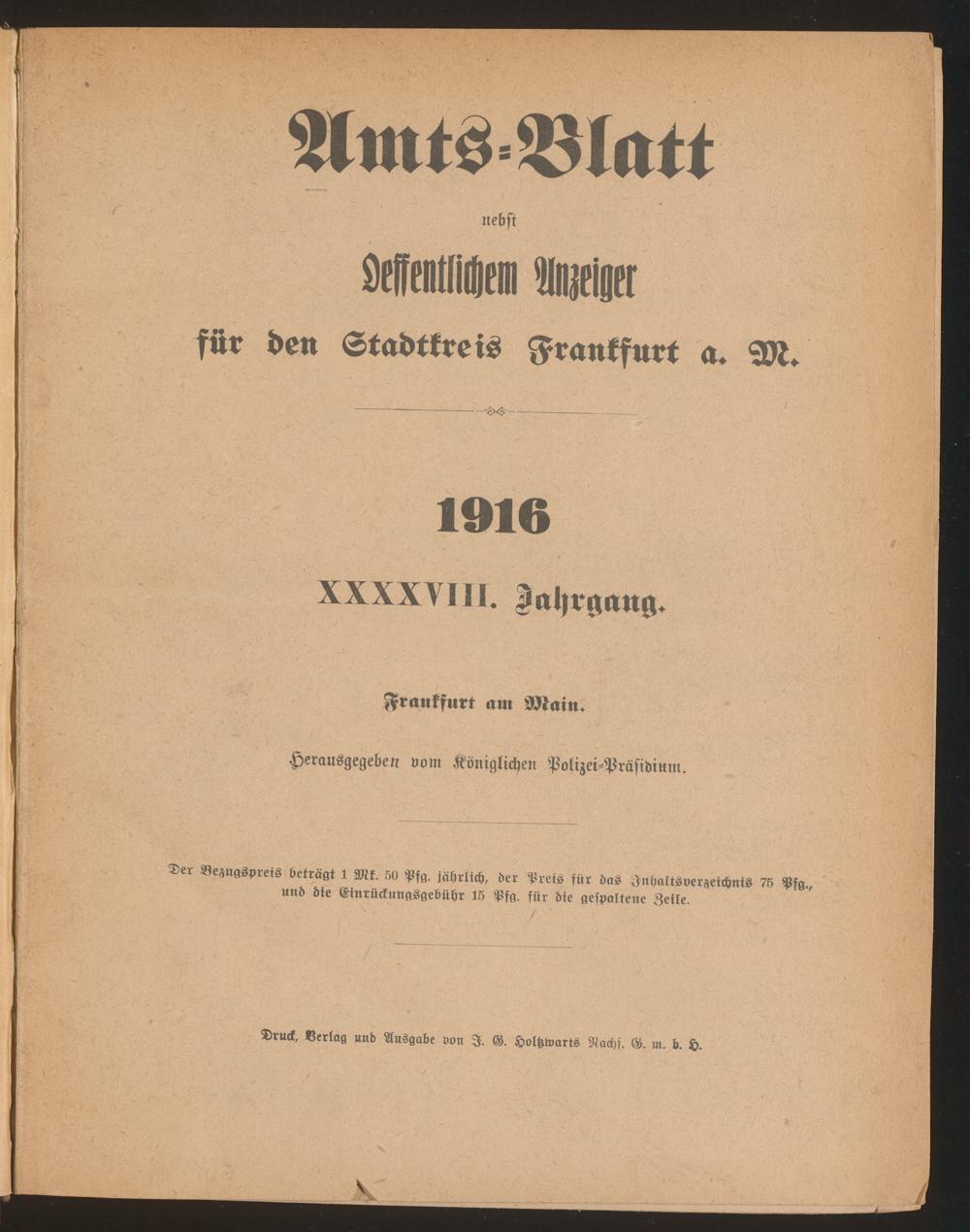 Amtsblatt für den Stadtkreis Frankfurt a.M.. 1828-1918