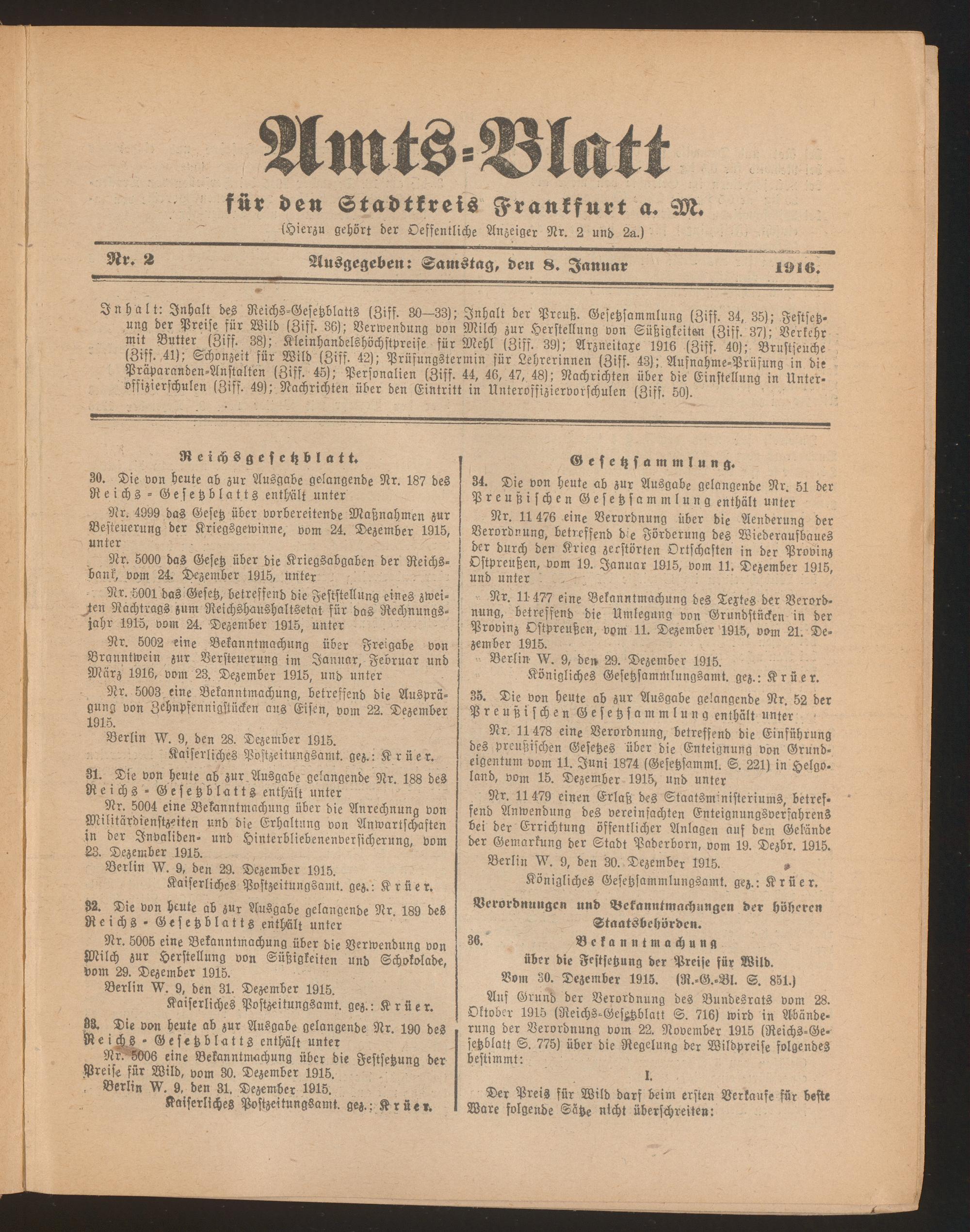 Amtsblatt für den Stadtkreis Frankfurt a.M.....