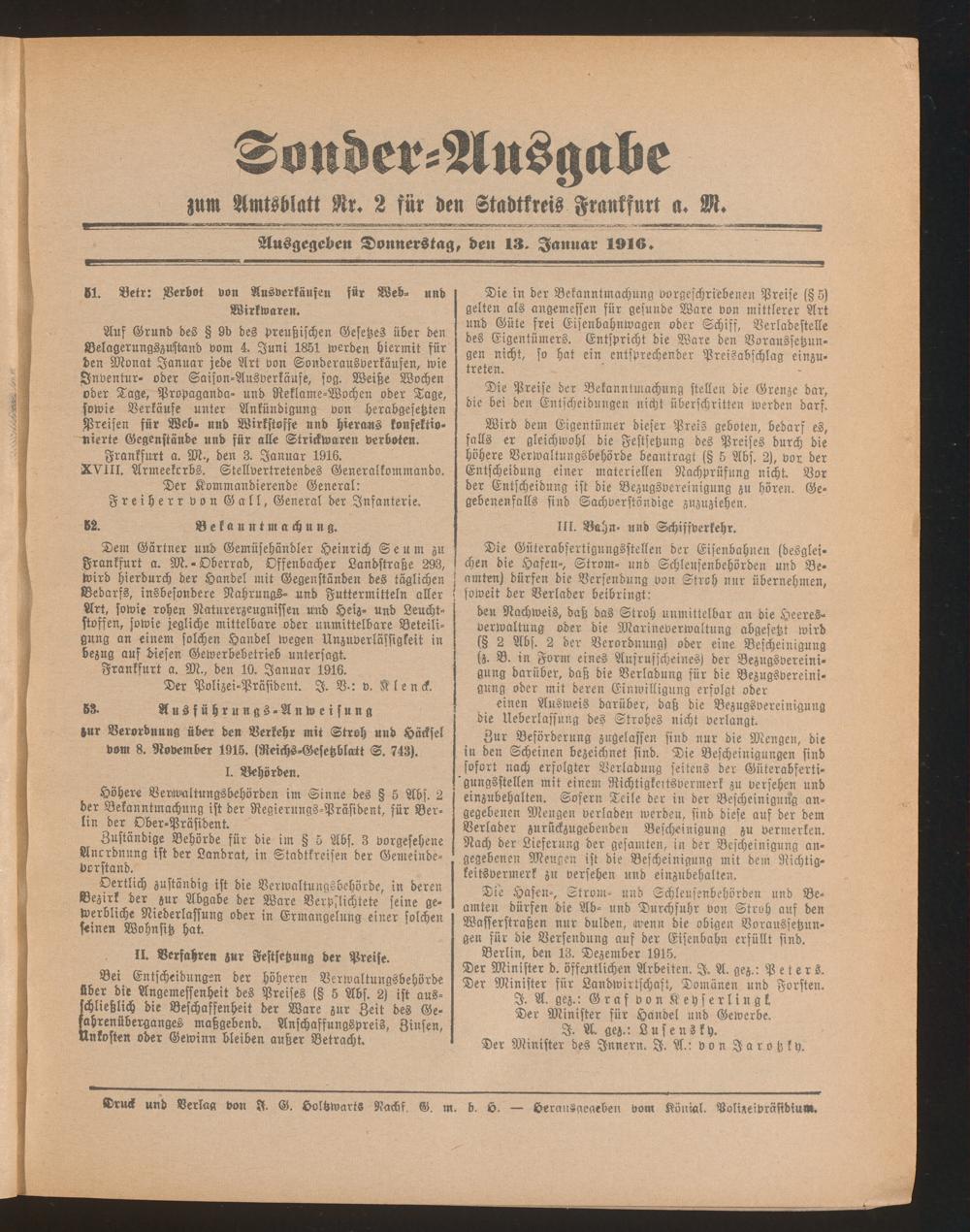 13.01.1916 = Sonder-Ausgabe zu Nr. 2