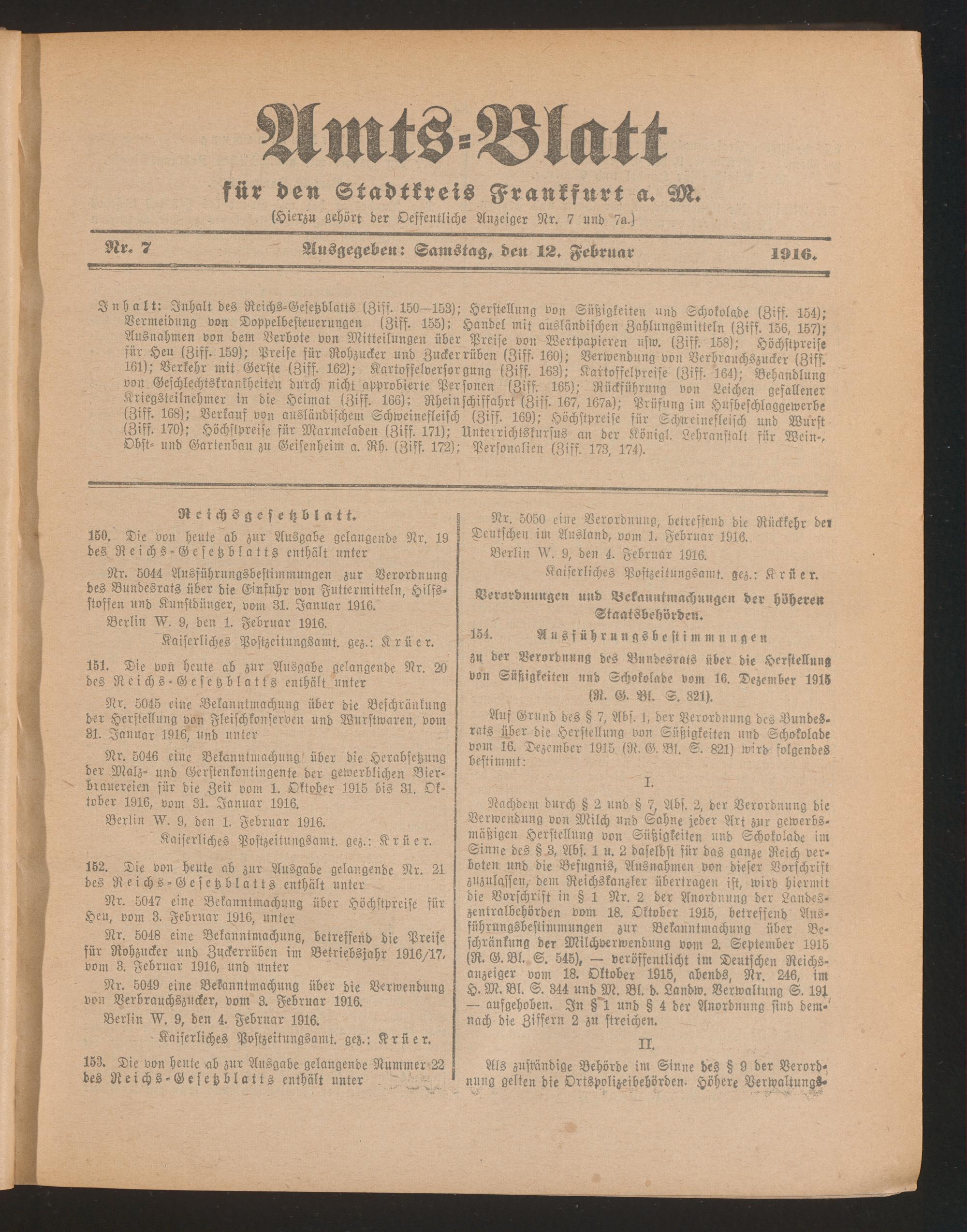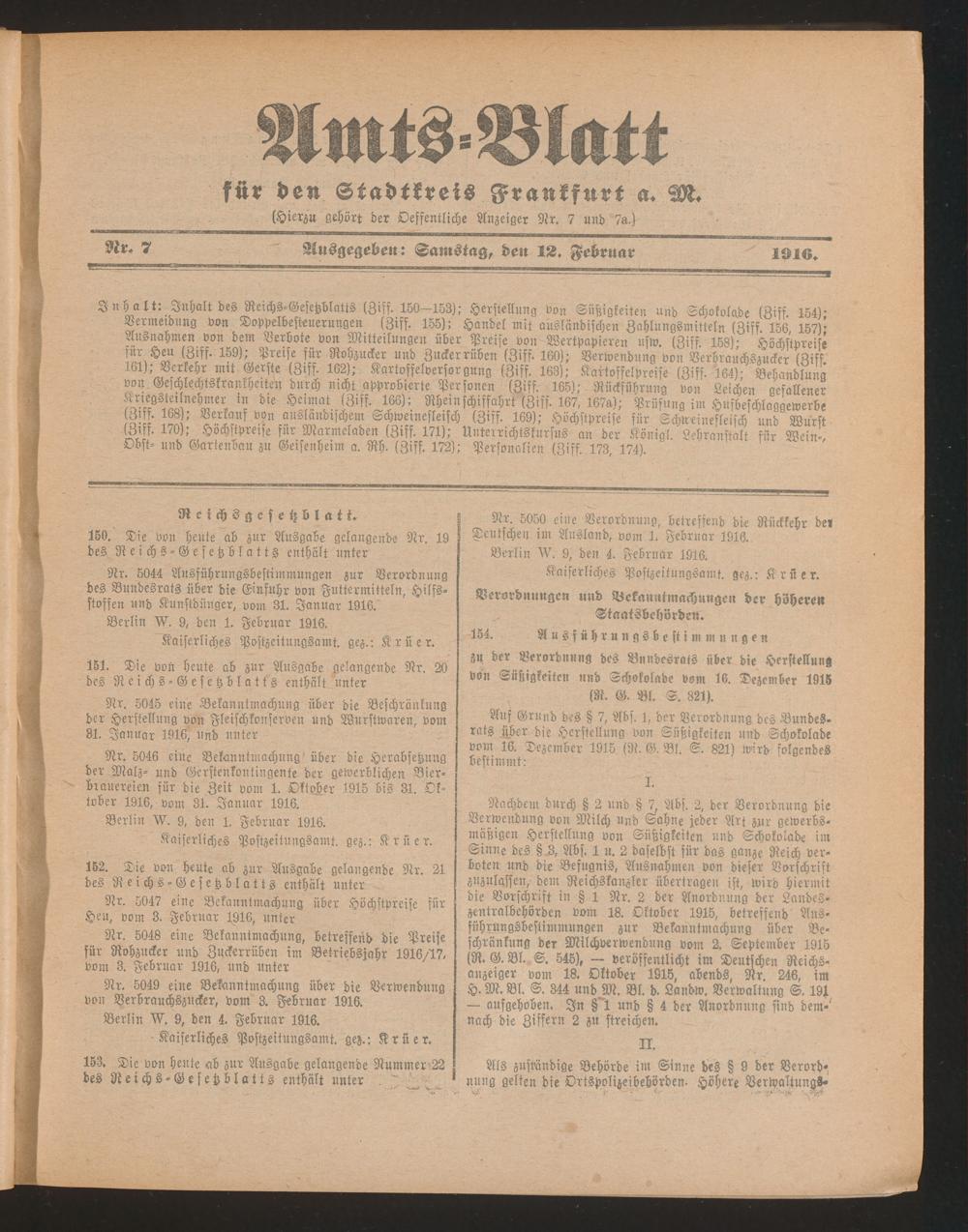 Amtsblatt für den Stadtkreis Frankfurt a.M.....