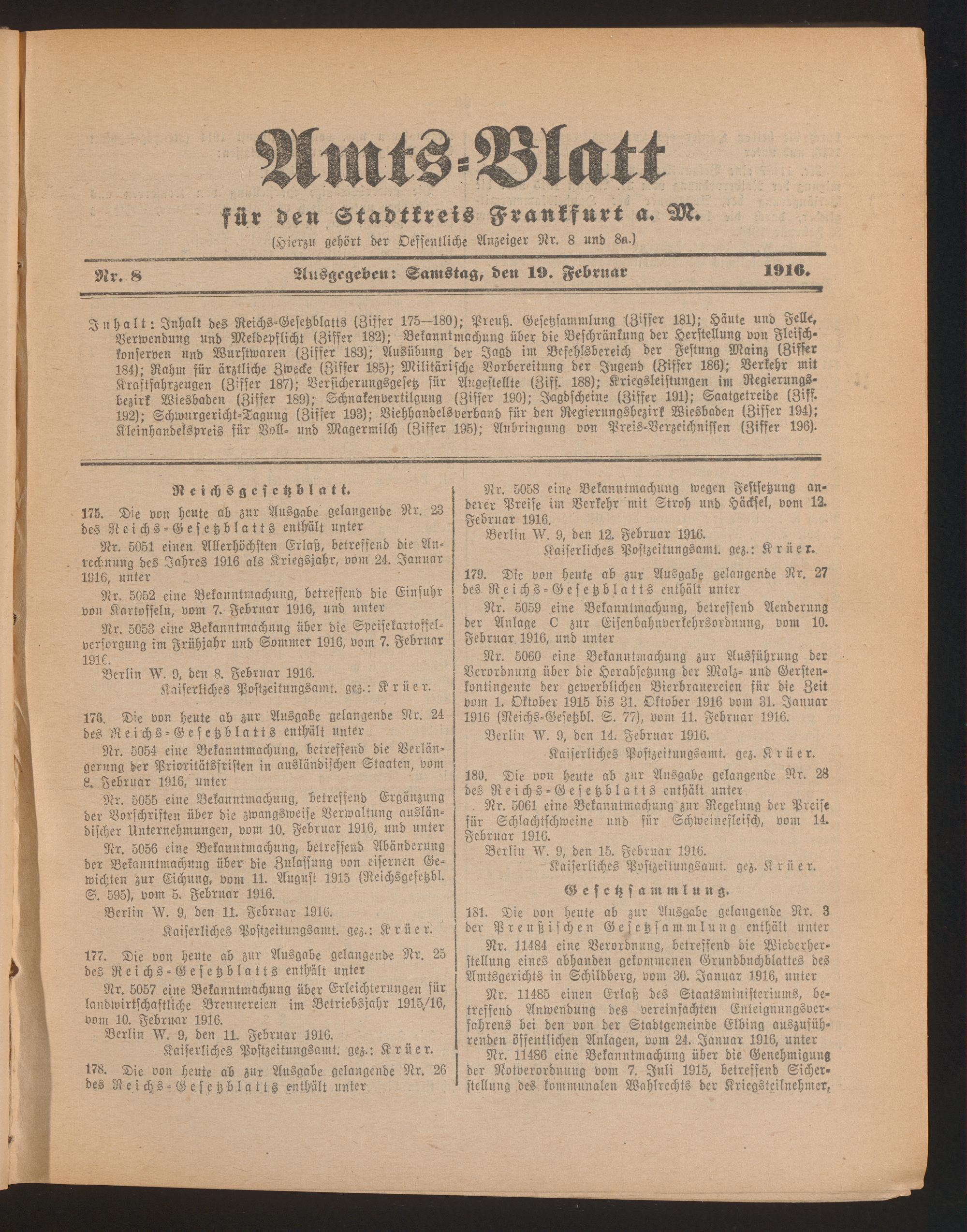 Amtsblatt für den Stadtkreis Frankfurt a.M.....