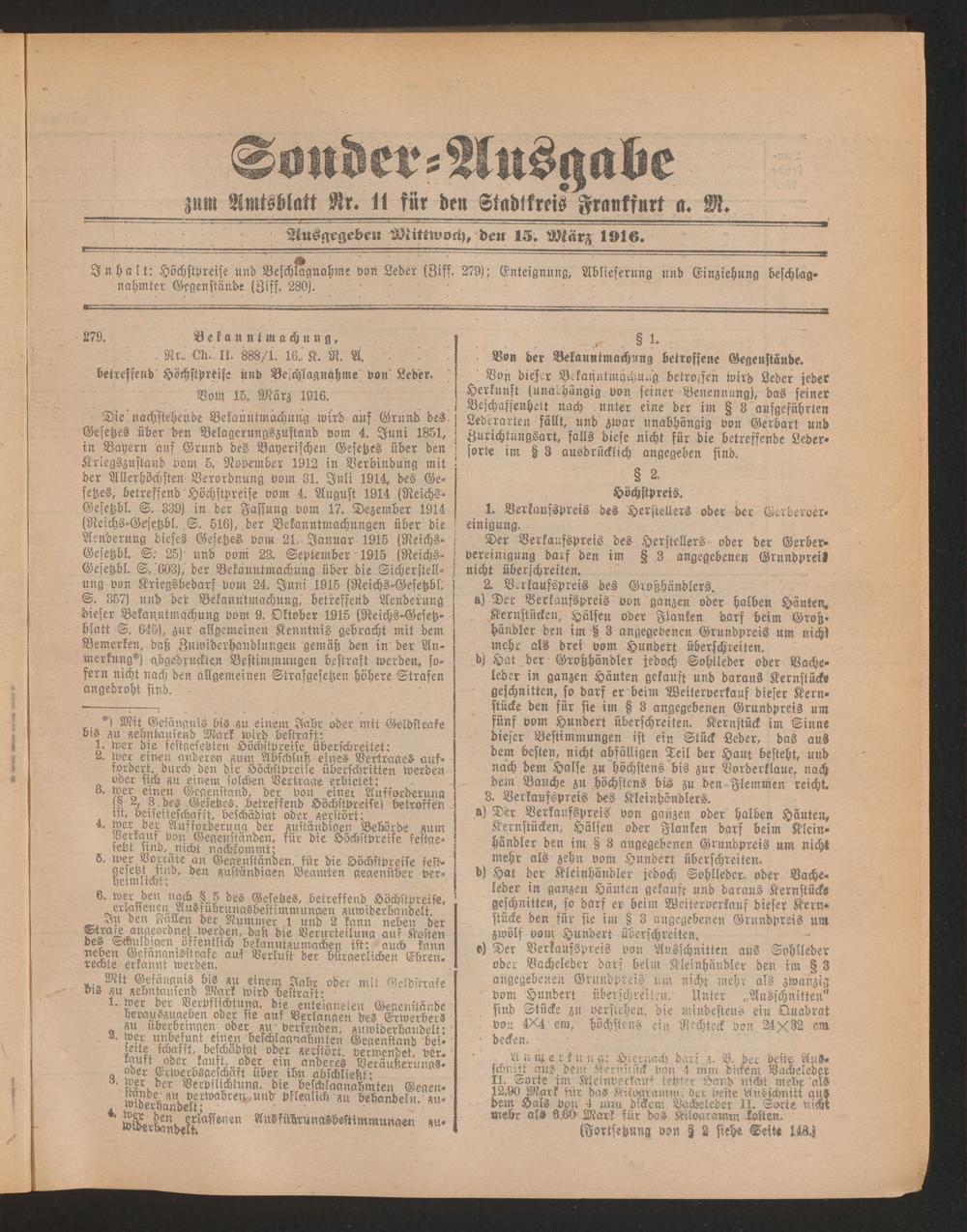 15.03.1916 = Sonder-Ausgabe zu Nr. 11