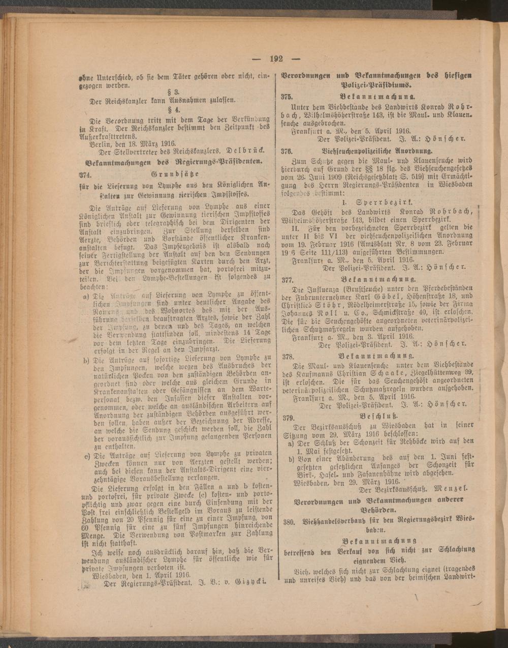 Amtsblatt für den Stadtkreis Frankfurt a.M.. 1828-1918
