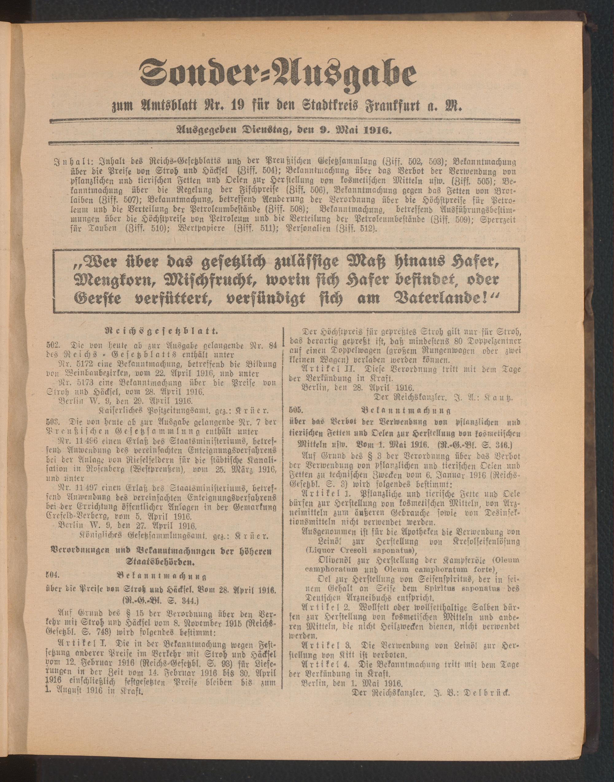 09.05.1916 = Sonder-Ausgabe zu Nr. 19