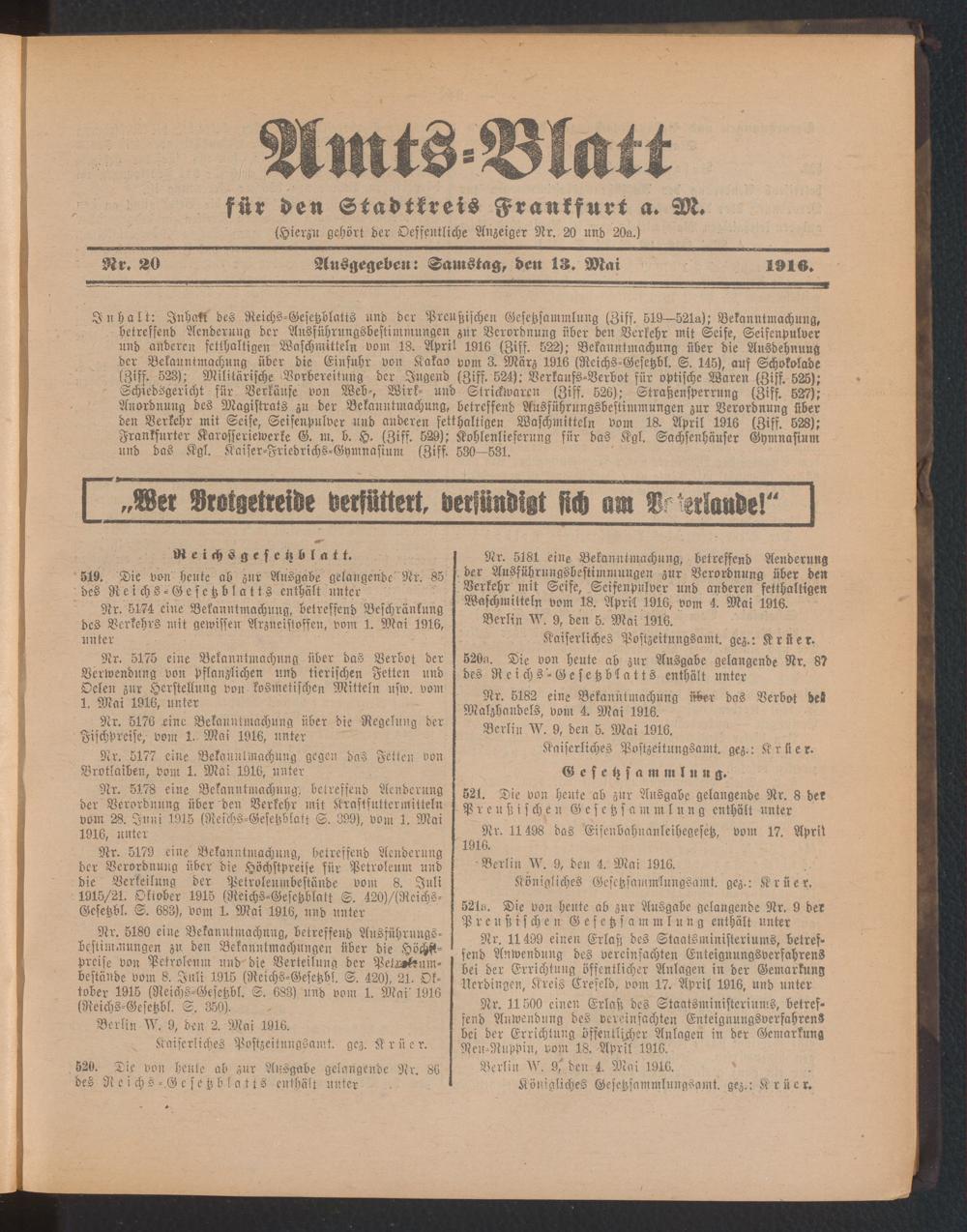 Amtsblatt für den Stadtkreis Frankfurt a.M.....
