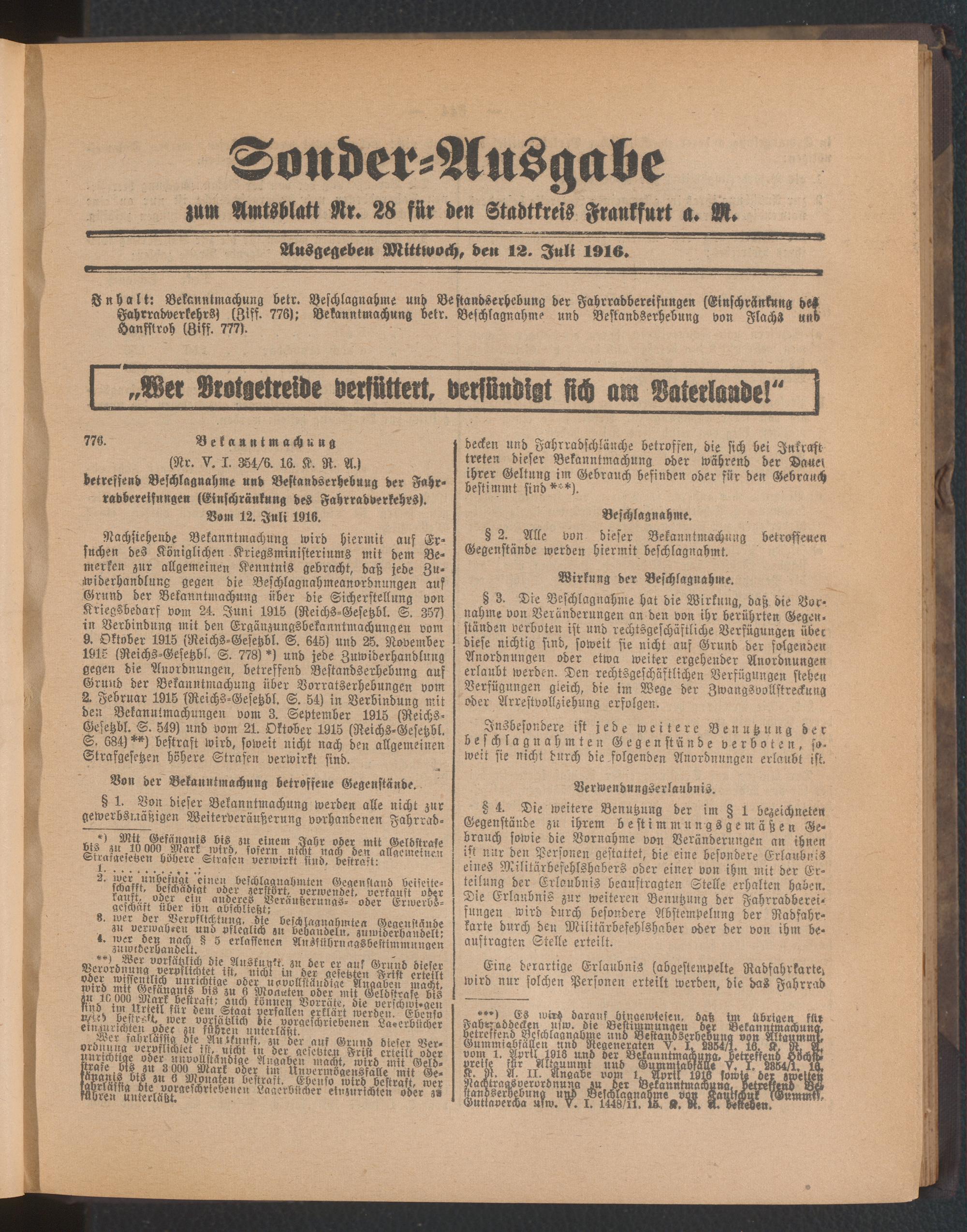 12.07.1916 = Sonder-Ausgabe zu Nr. 28