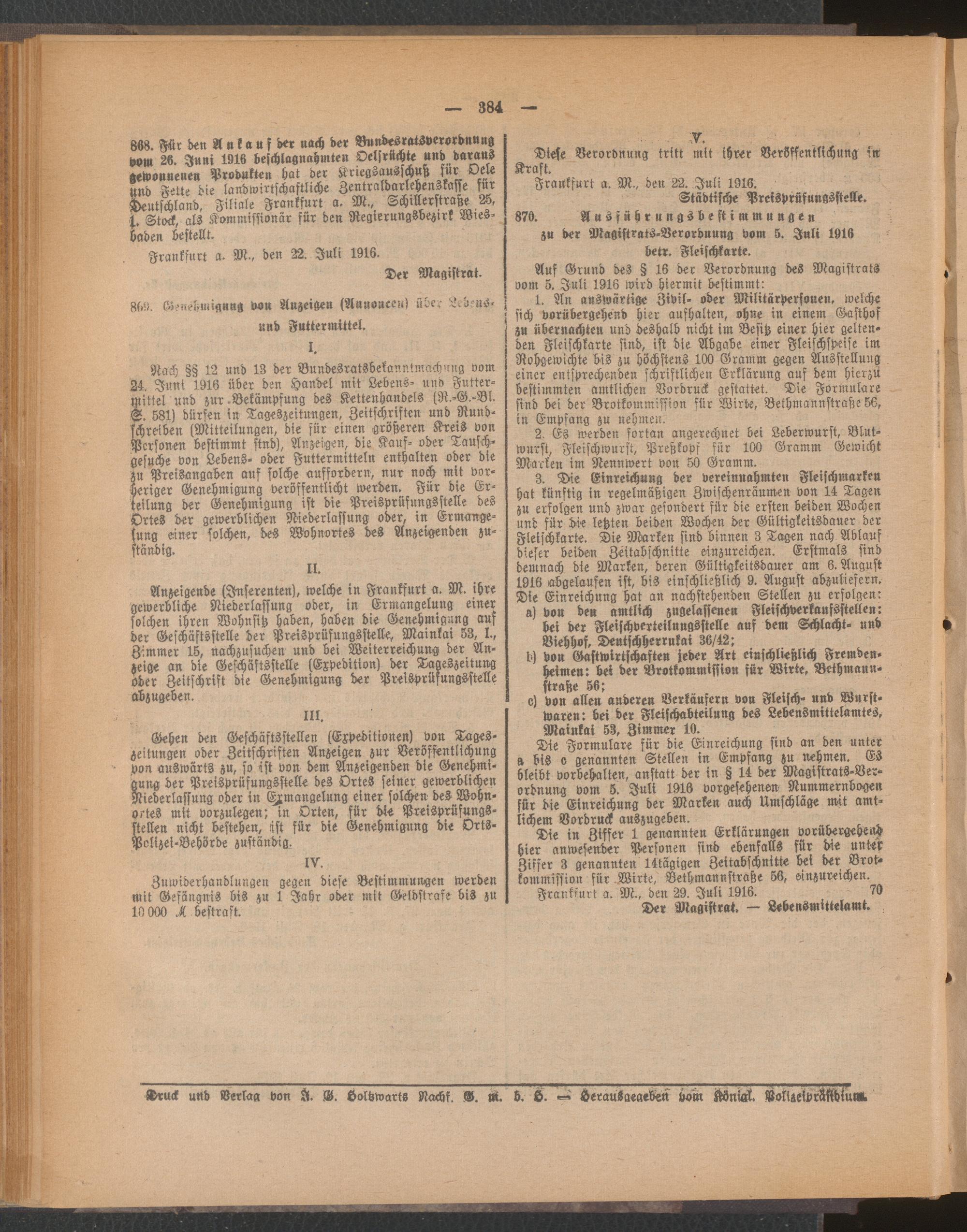 Amtsblatt für den Stadtkreis Frankfurt a.M.....