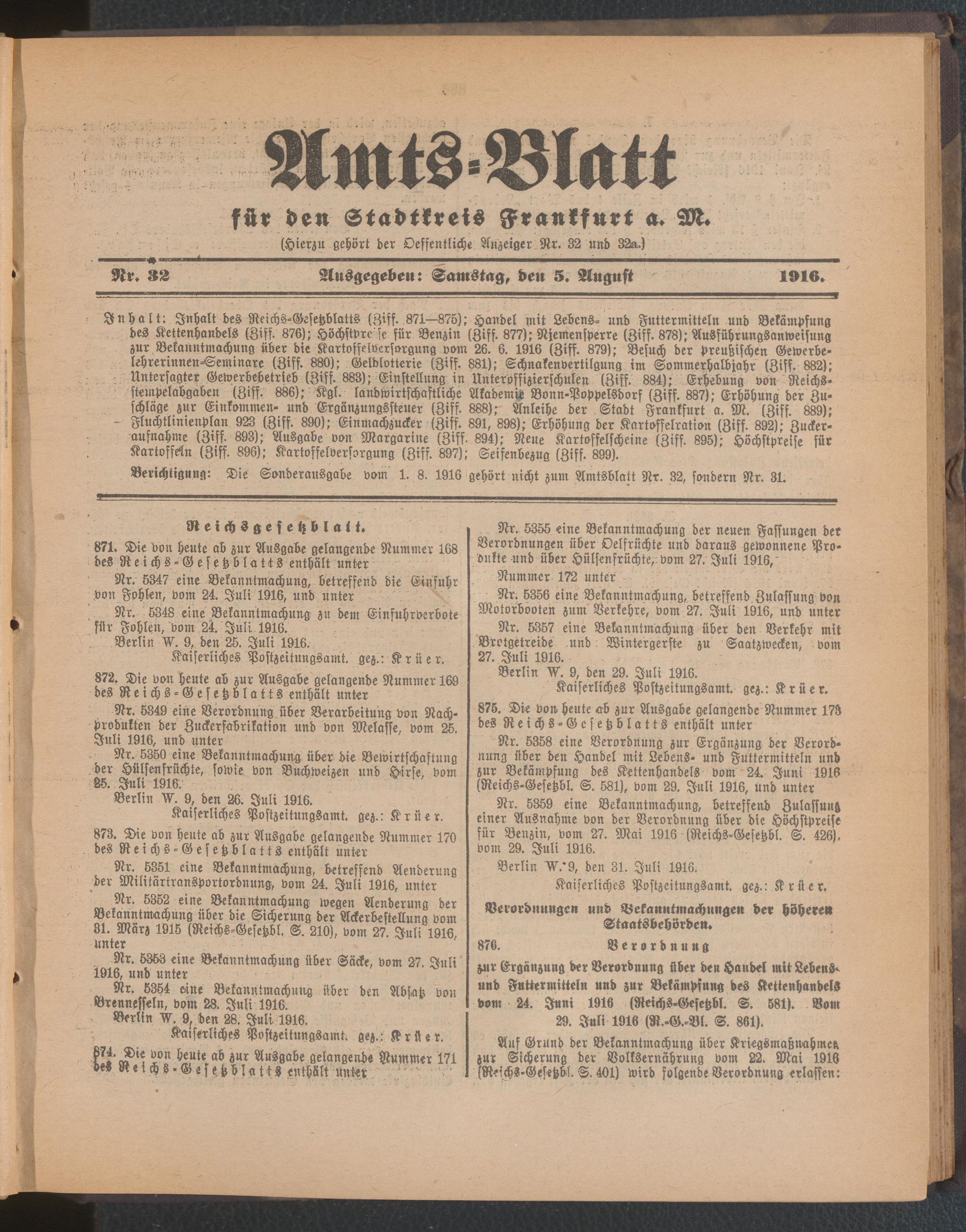 Amtsblatt für den Stadtkreis Frankfurt a.M.....