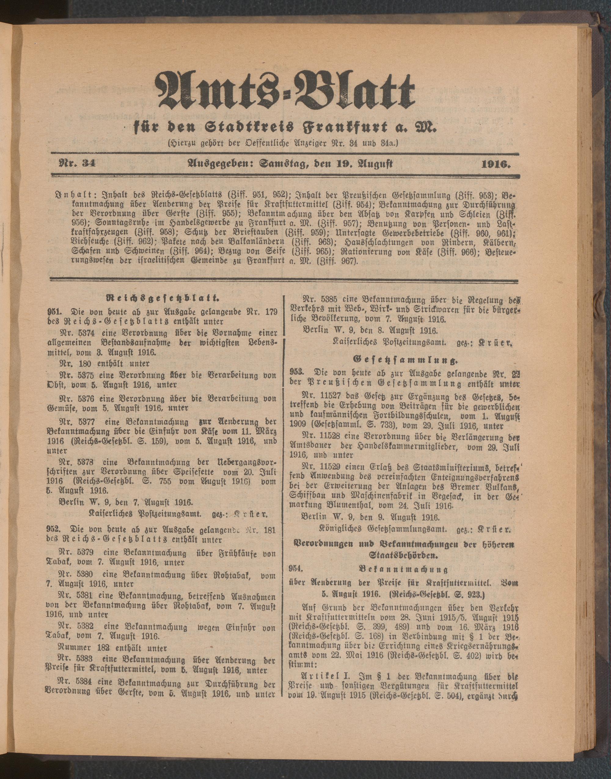 Amtsblatt für den Stadtkreis Frankfurt a.M.....
